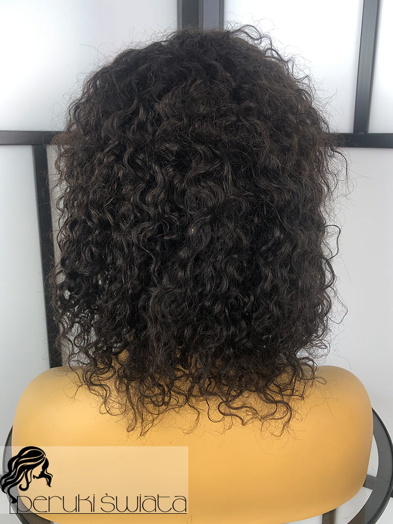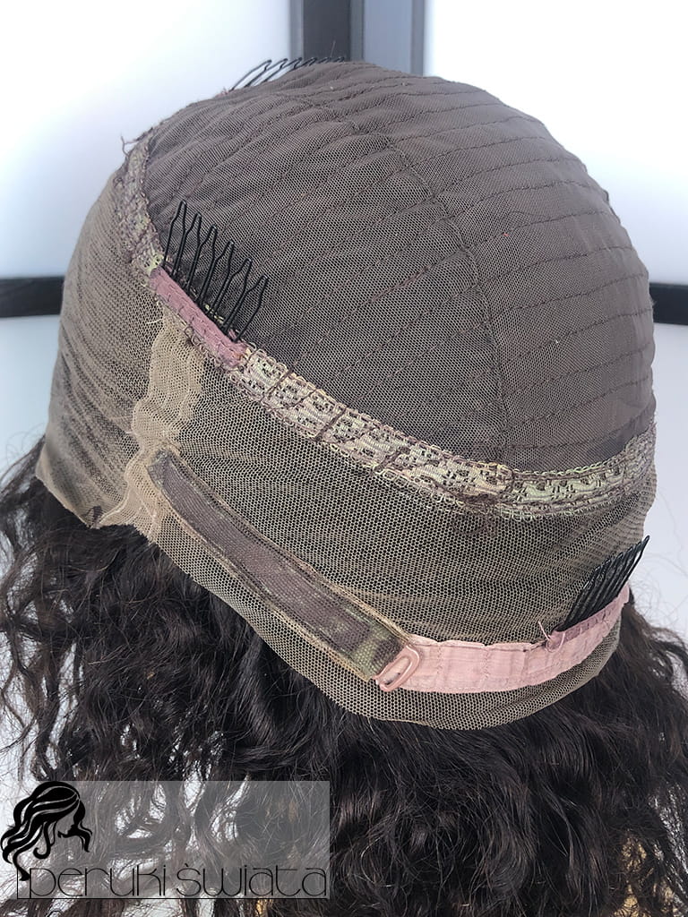 Peruka Pernille na ręcznie tkanym czepku z siatki, włosy naturalne, kolor: ciemny naturalny brąz