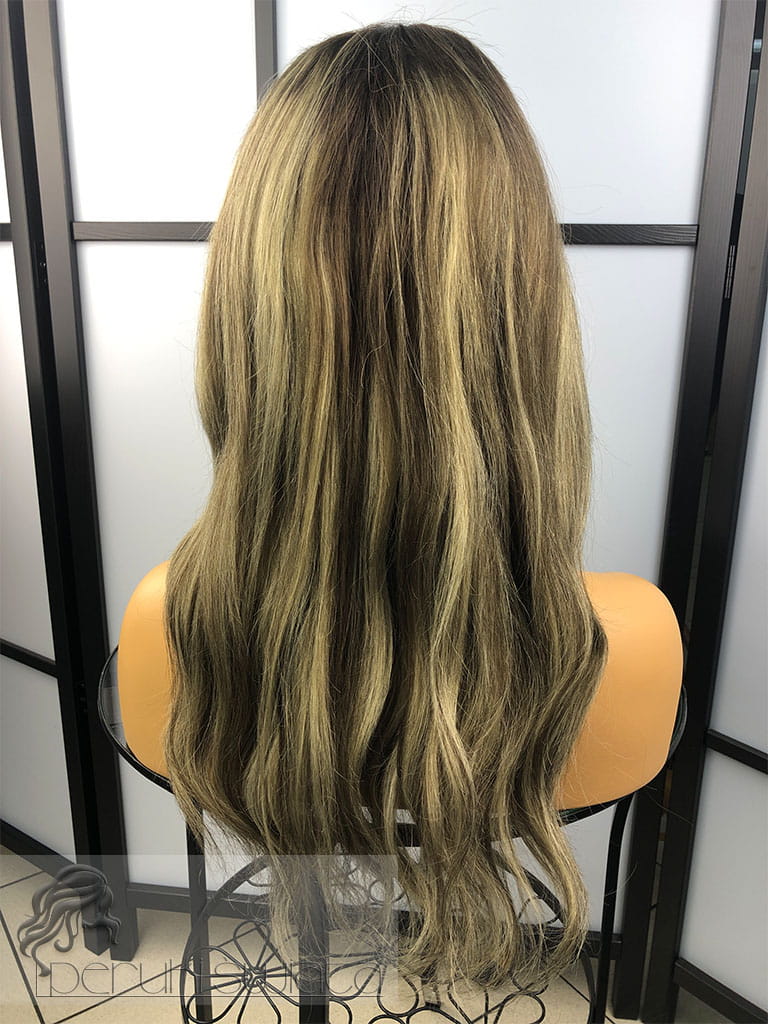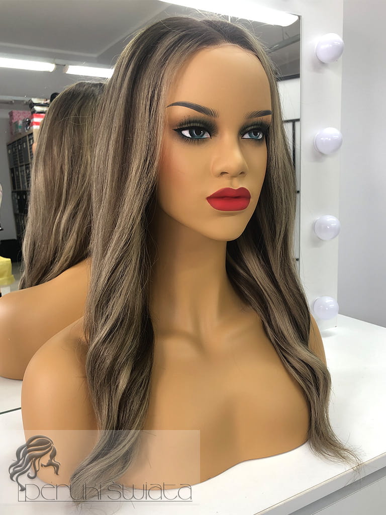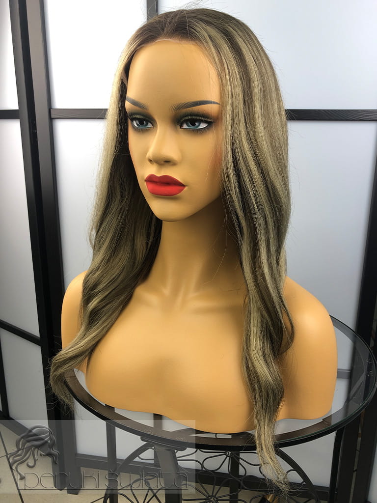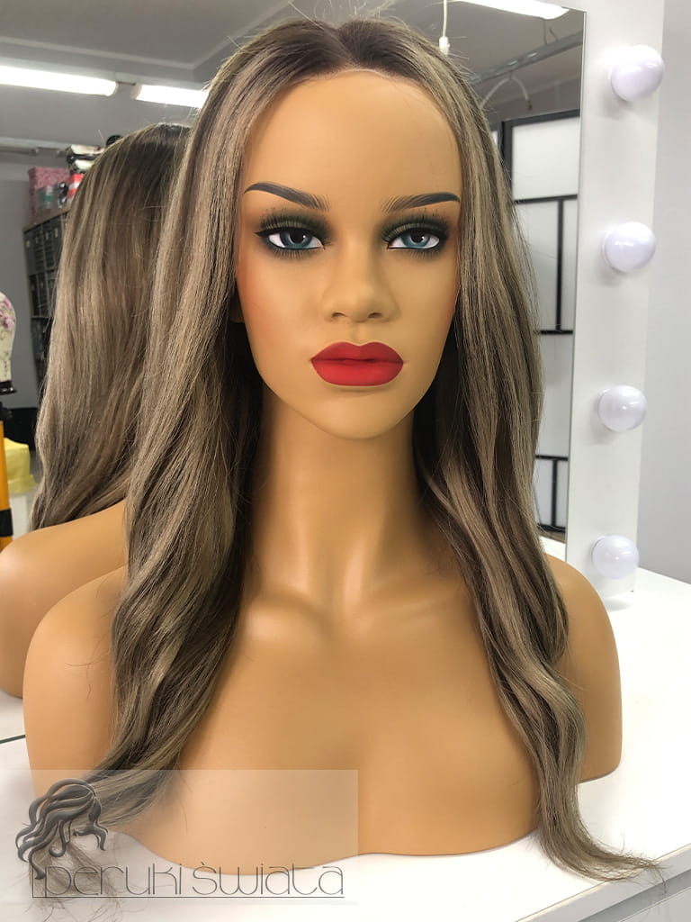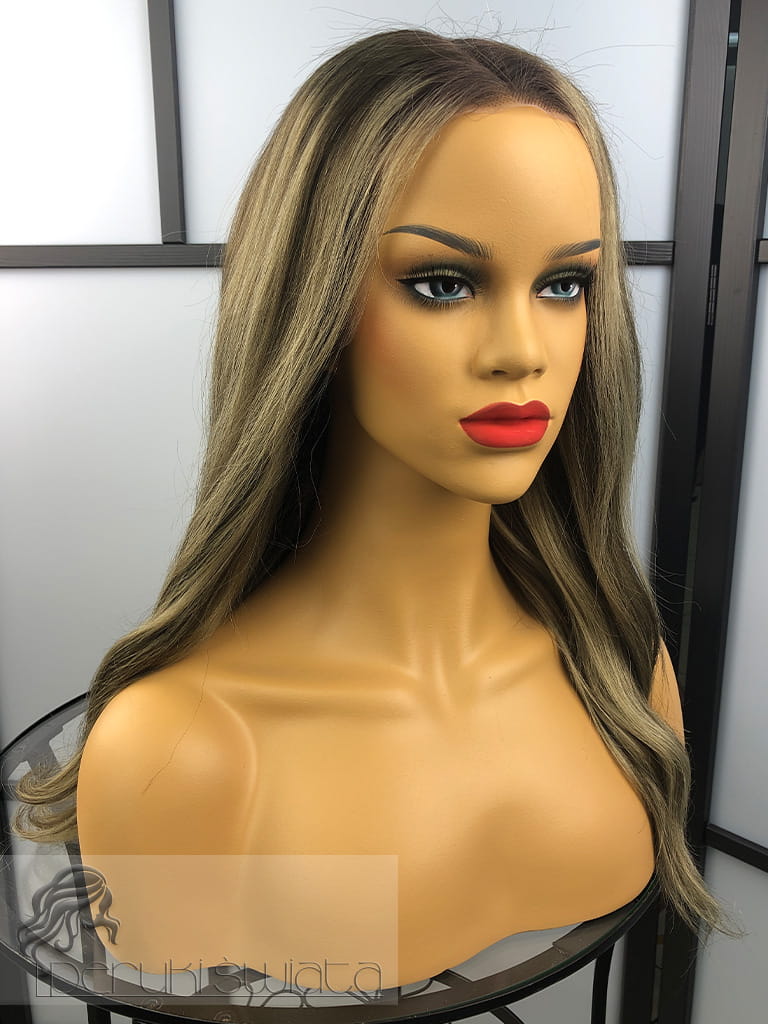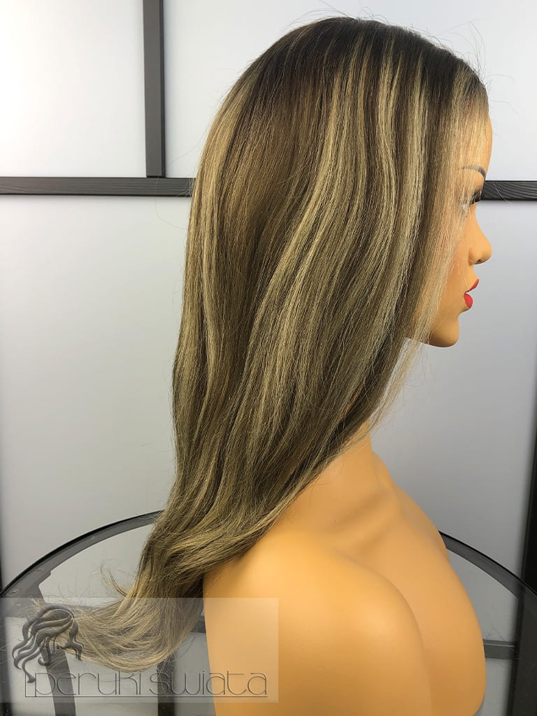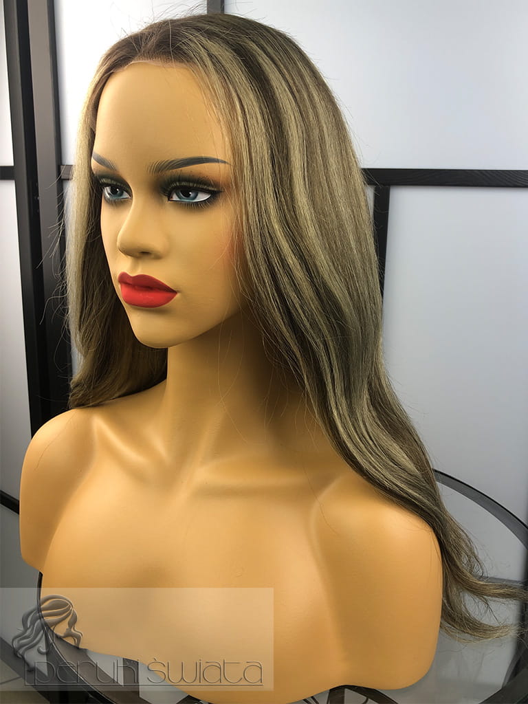 Peruka Veda, włosy naturalne, ręcznie tkane na mikroskórze, kolor: mix jasnych i ciemnych blondów na odroście