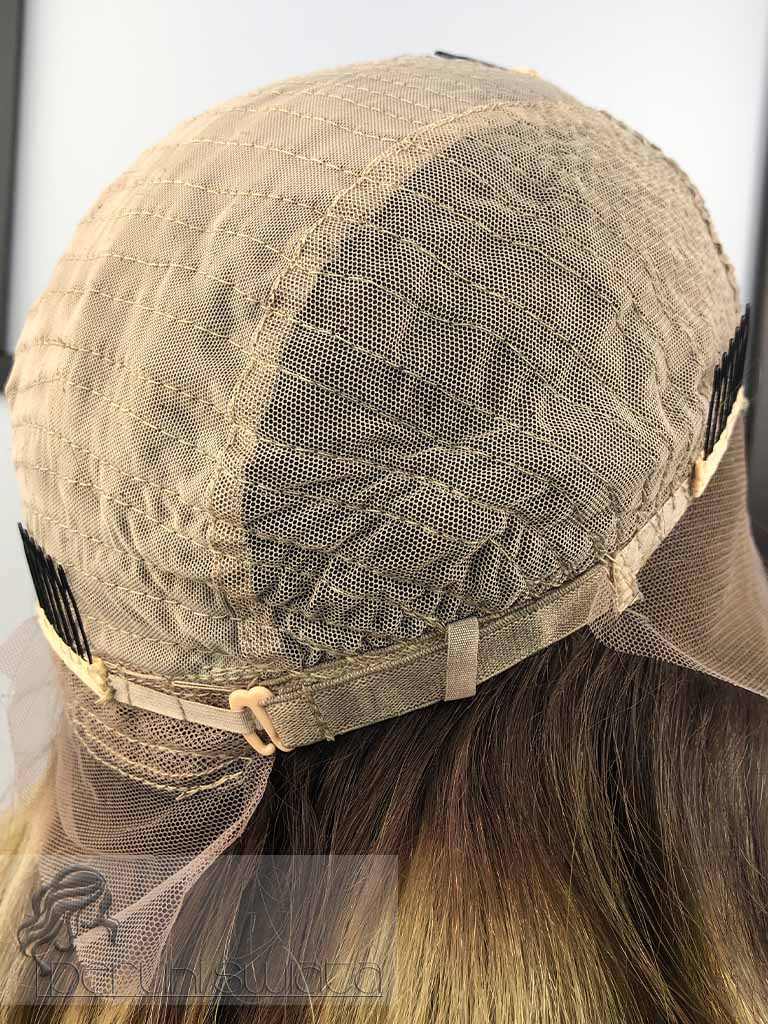Typ czepka: full lace front (efekt wyrastania włosów z głowy, rozmyta linia przednia peruki sprawiająca wrażenie scalenia ze skalpem, możliwość do wolnego zaczesania włosów oraz docięcia grzywki, z tyłu czepka dodatkowa siateczka służąca lepszej stabilizacji po podklejeniu, np w przypadku wysokich upięć)