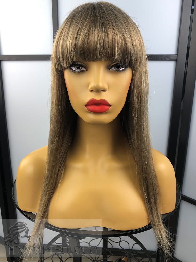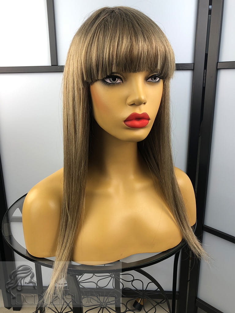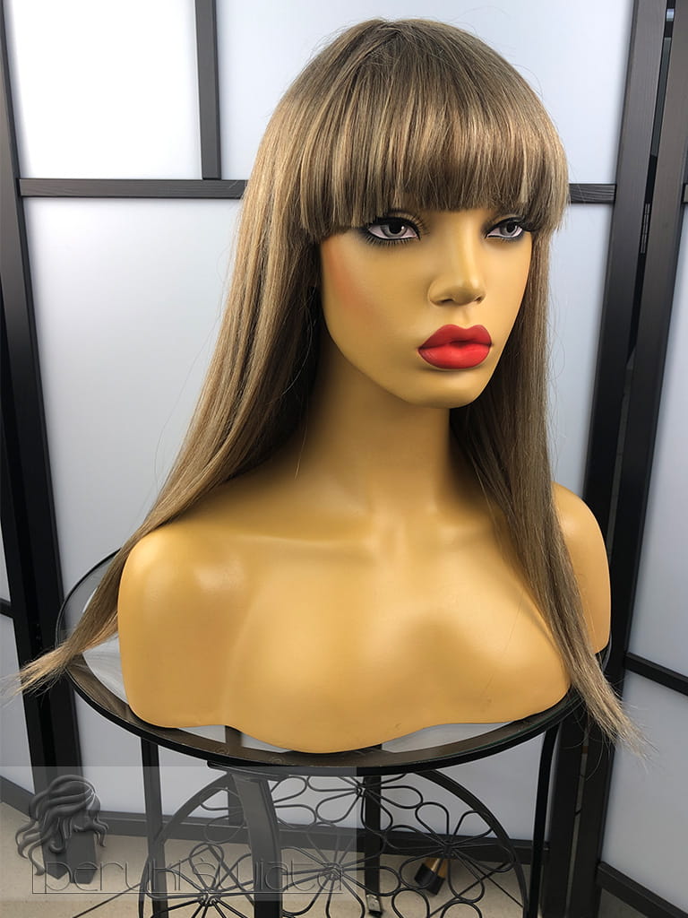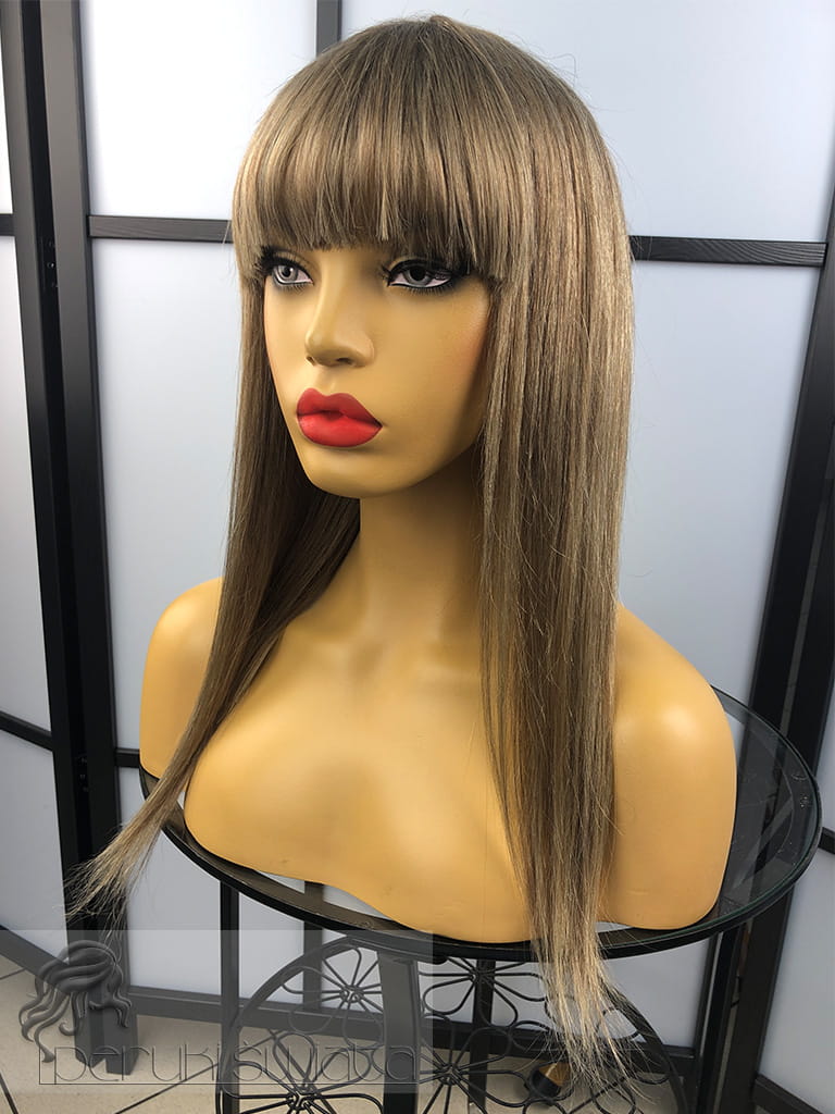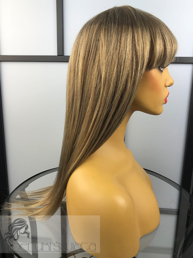 Peruka Ximena, włosy naturalne, long bob z grzywką, kolor: mix jasnych, ciepłych blondów