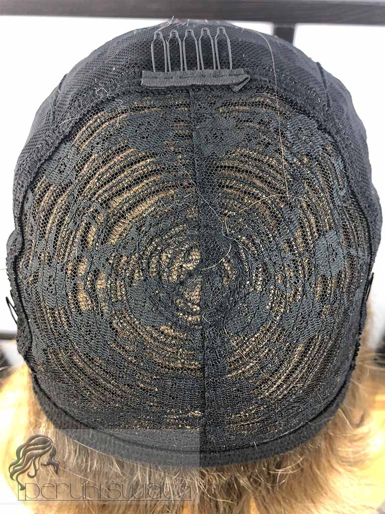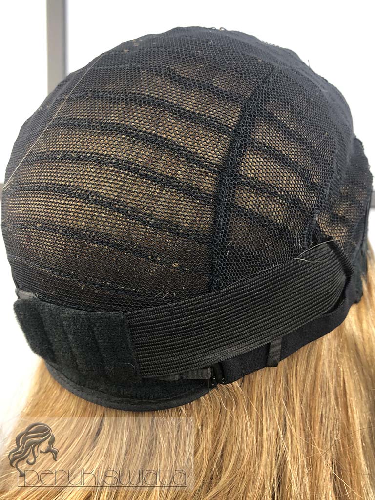 Model Lisa, peruka syntetyczna, monotop, kanekalon, fale, kolor: ciepły słowiański blond na odroście