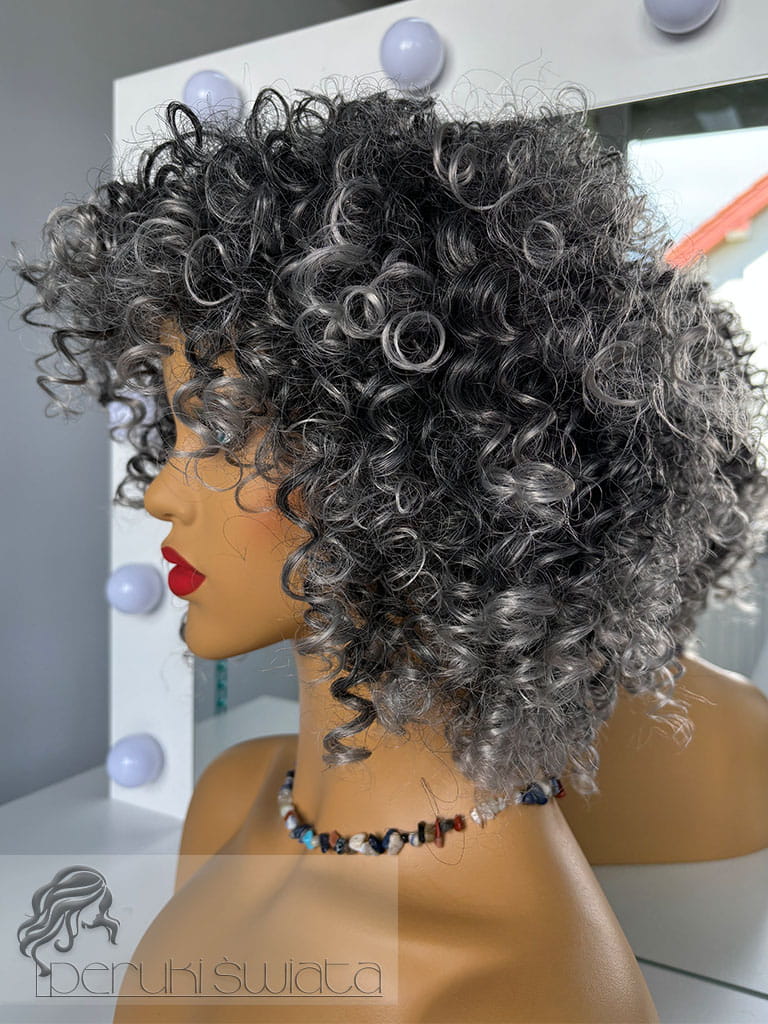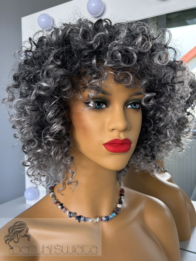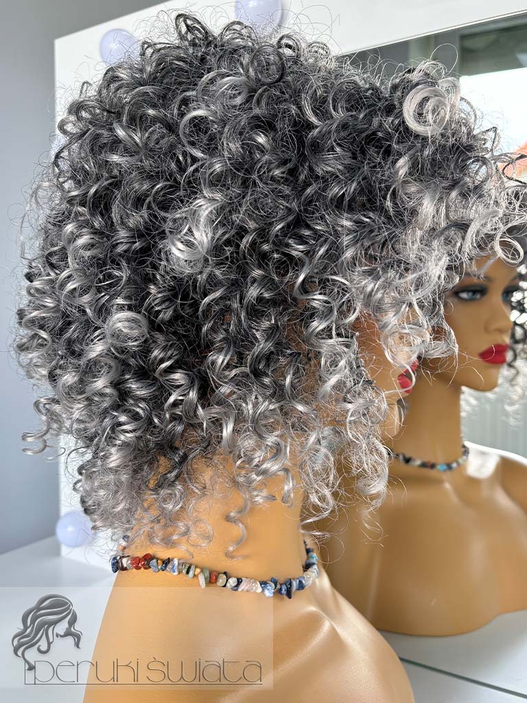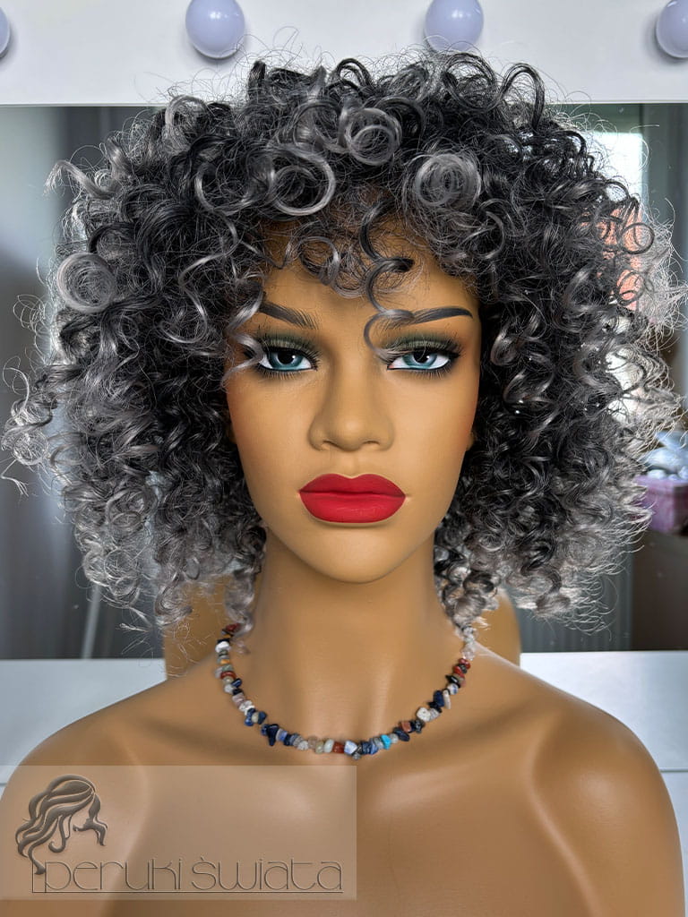 Peruka Zaria, kanekalon japoński, afroloki, kolor: ombre: szary blond z czernią