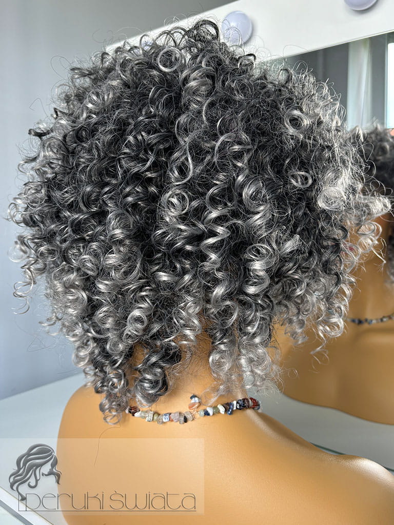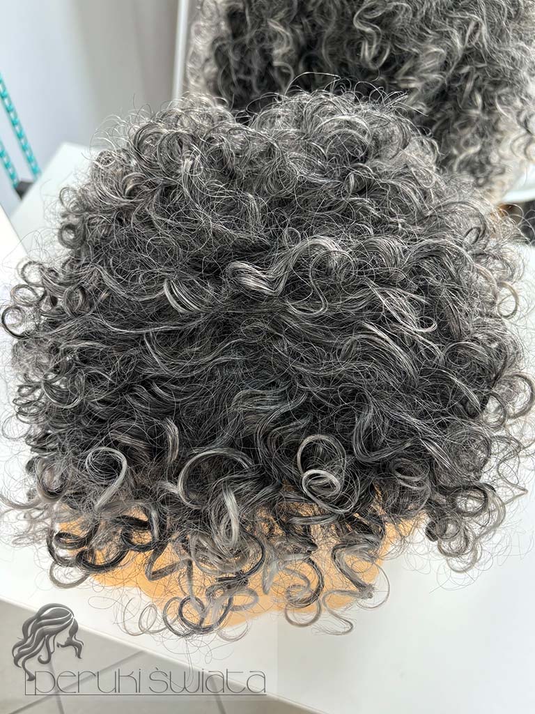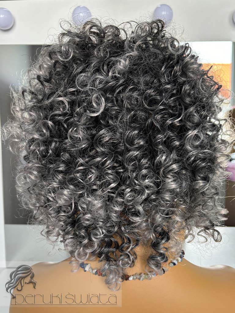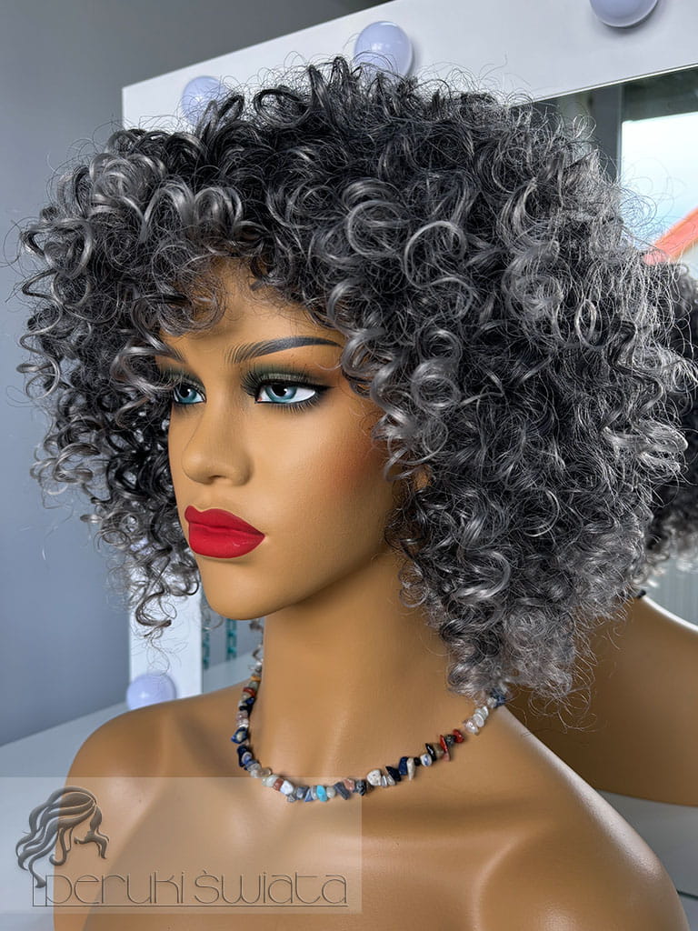 Peruka Zaria, kanekalon japoński, afroloki, kolor: ombre: szary blond z czernią