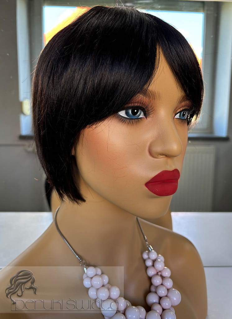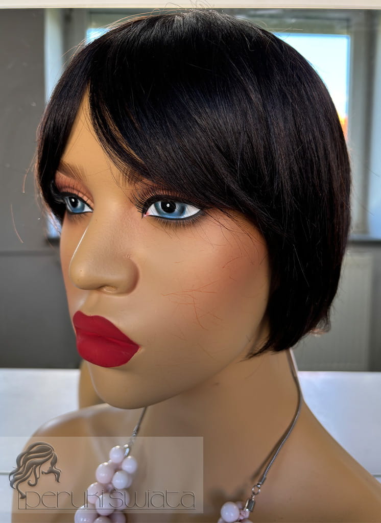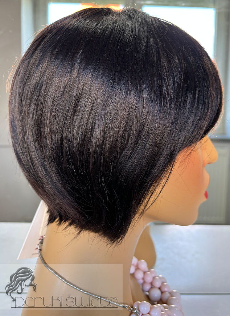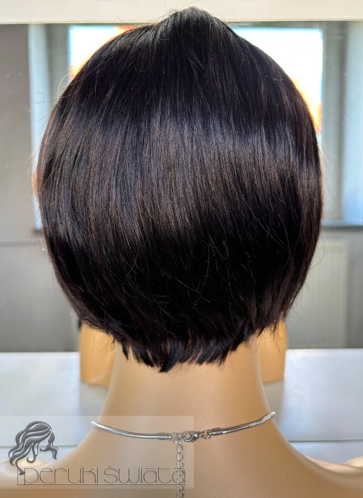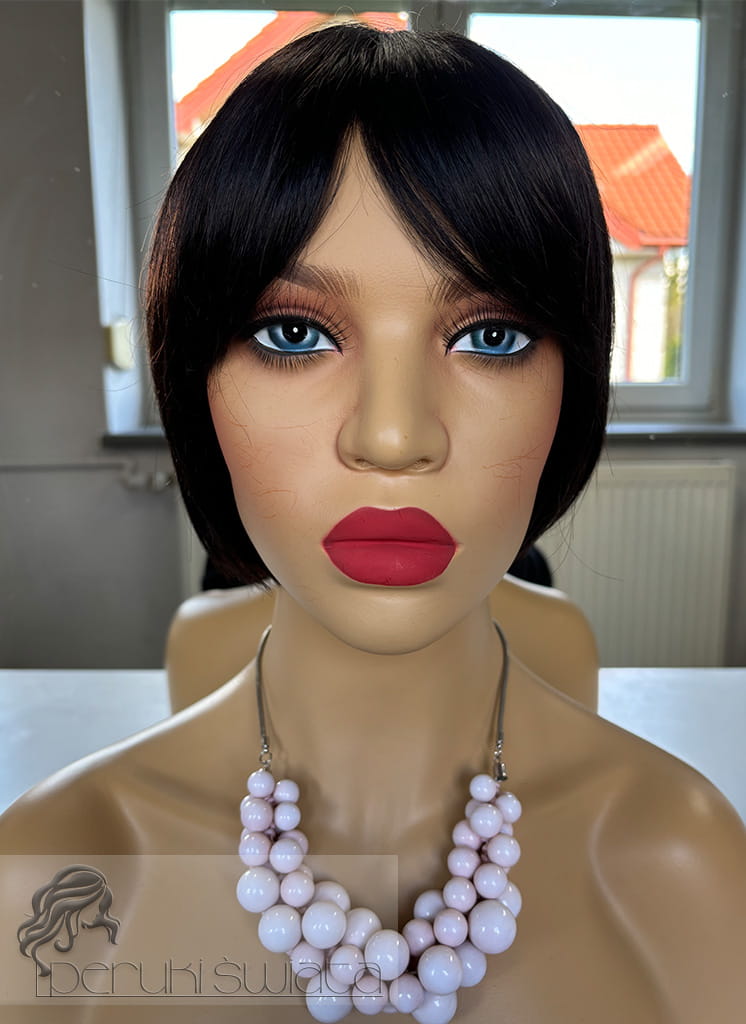 Peruka Zelda, bob z grzywką, włosy naturalne, kolor: ciemny brąz