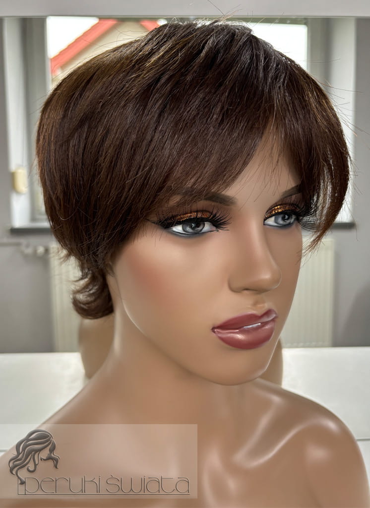 Peruka mieszana (70% włos naturalny europejski, 30 % kanekalon termoplastyczny), model Paris, włosy krótkie, kolor: brąz