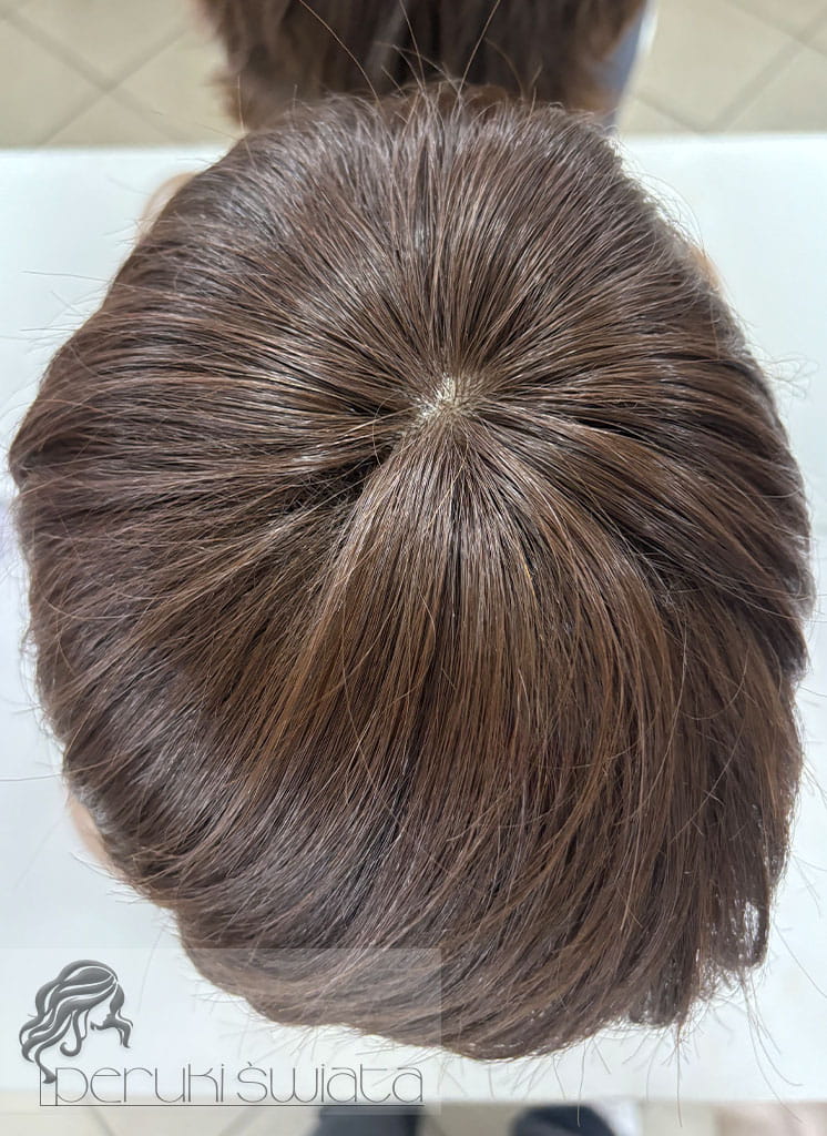 Lekka, oddychająca peruka z włosów mieszanych (70% włos naturalny europejski, 30 % kanekalon termoplastyczny), do codziennego użytku