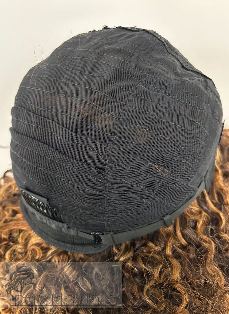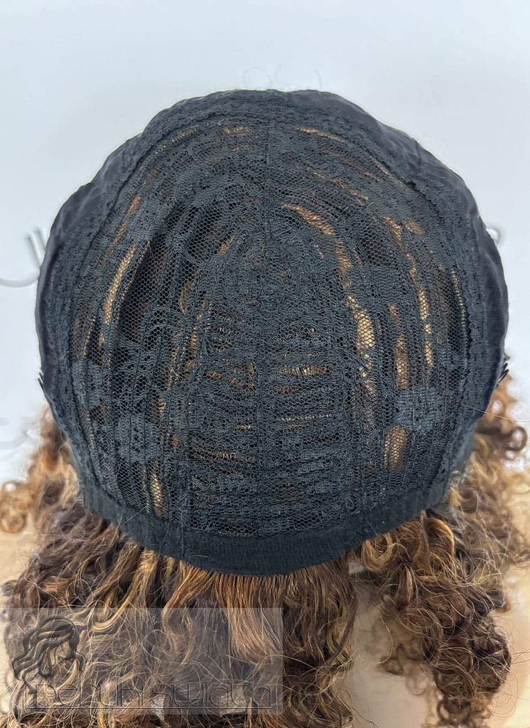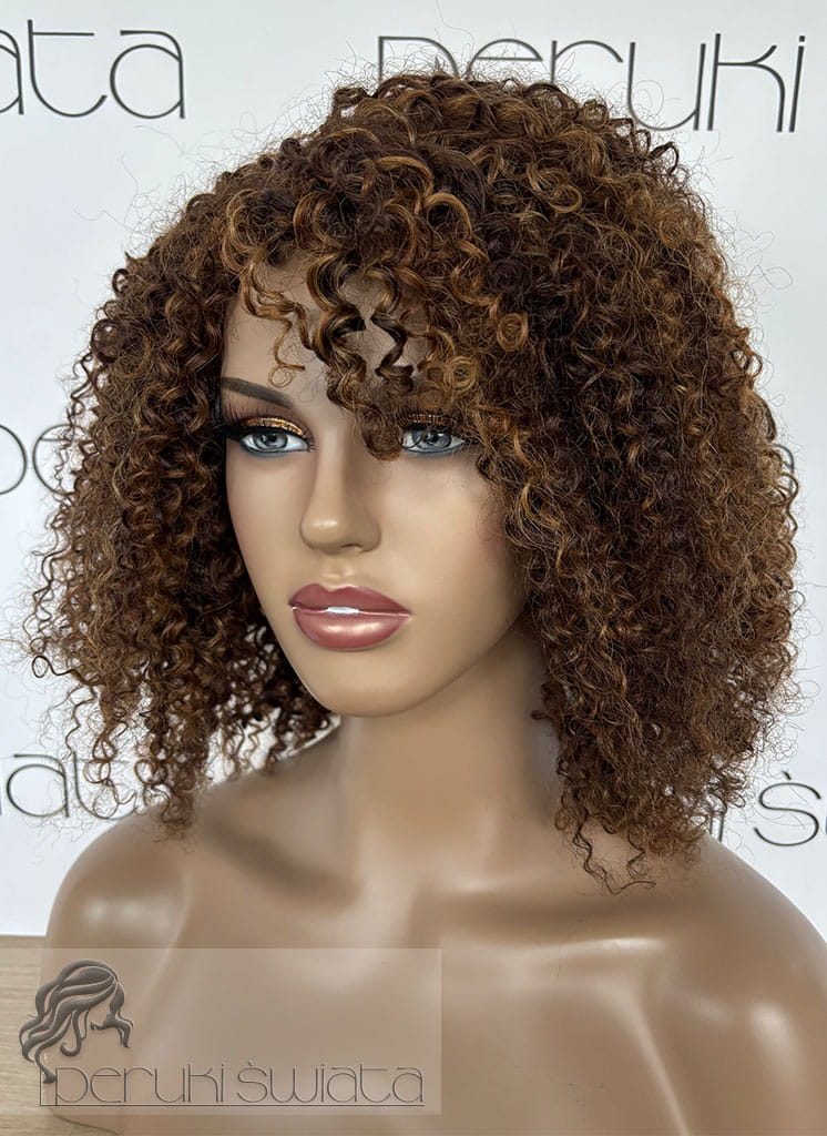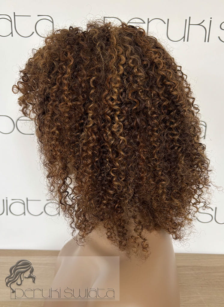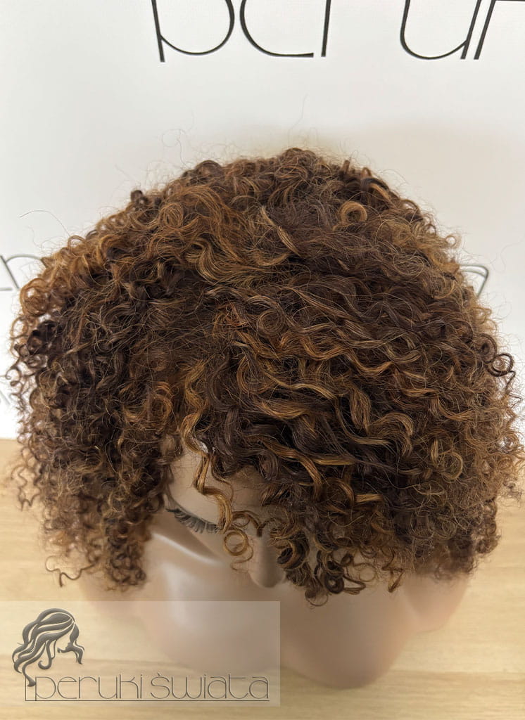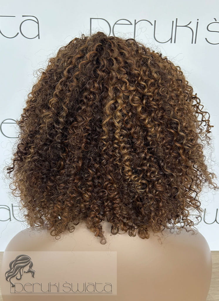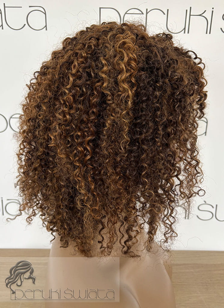 Peruka model Adele, afroloki, włosy naturalne, brąz z refleksami blondu (4/30/27)