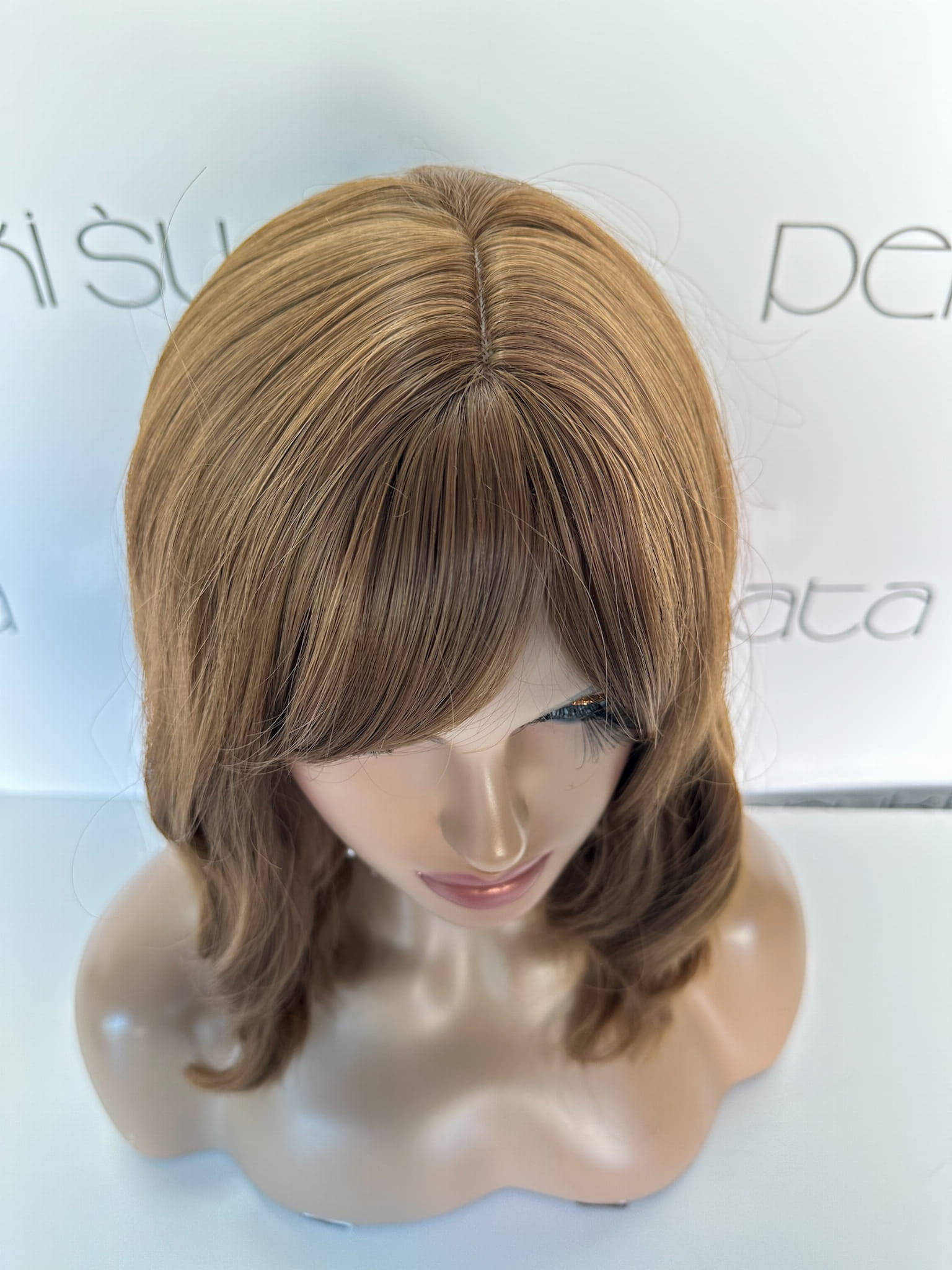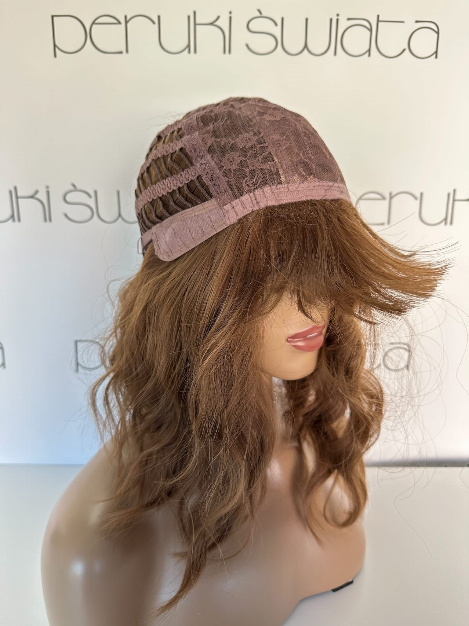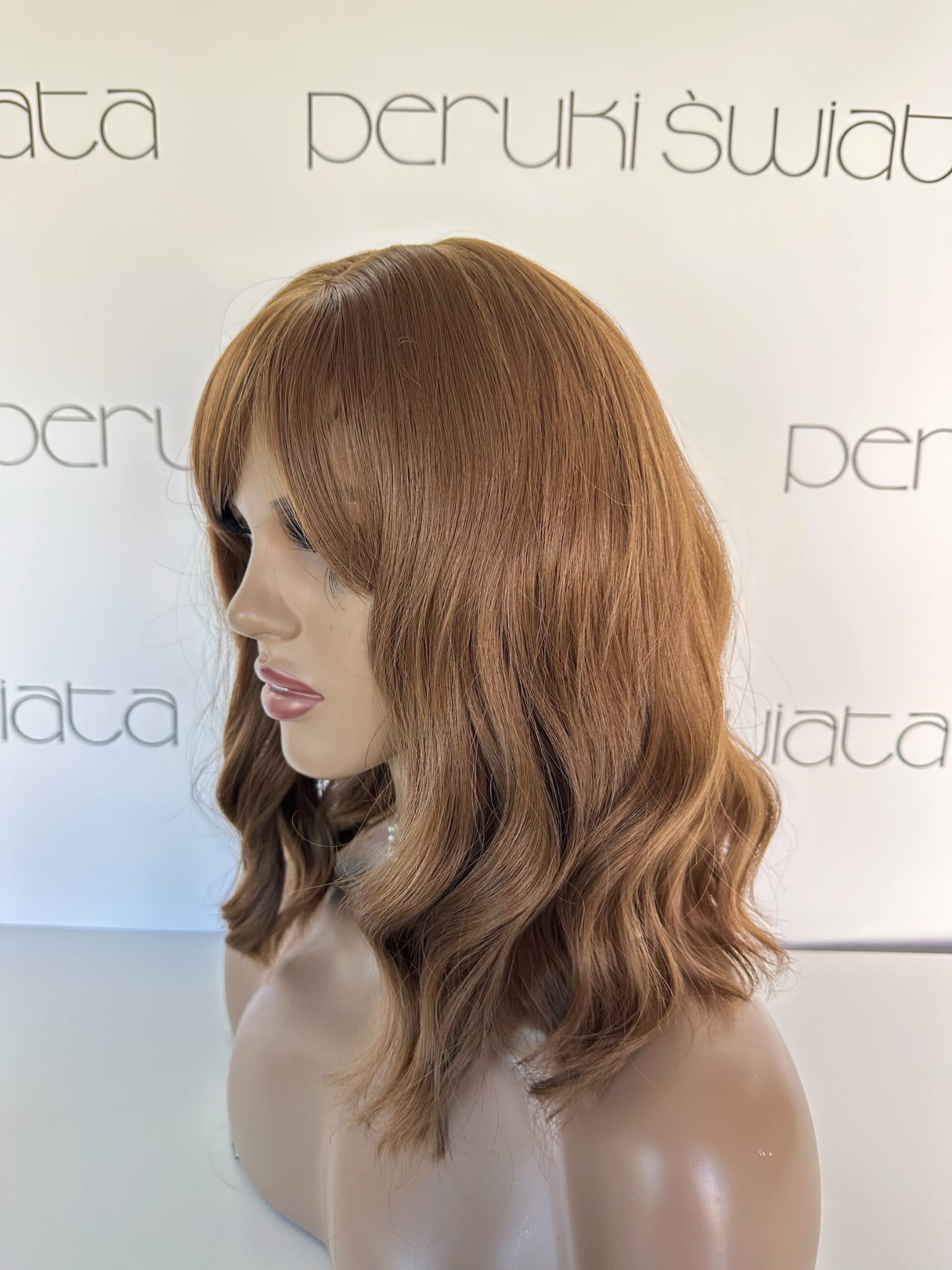 Peruka model Momo, kanekalon typu "true hair", long bob z grzywką, kolor: jasny, ciepły brąz
