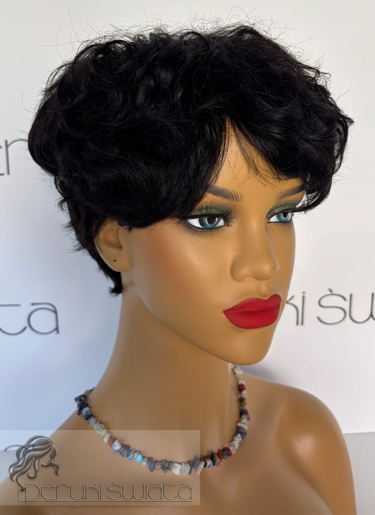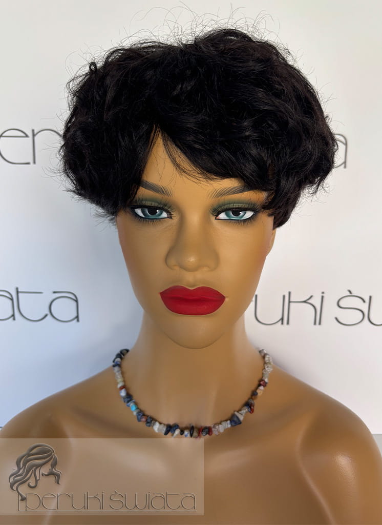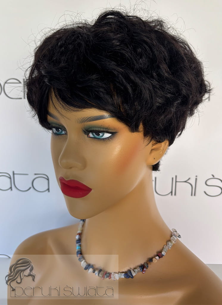 Peruka naturalna, model Genevie, włosy krótkie, kolor: czerń naturalna 1B
