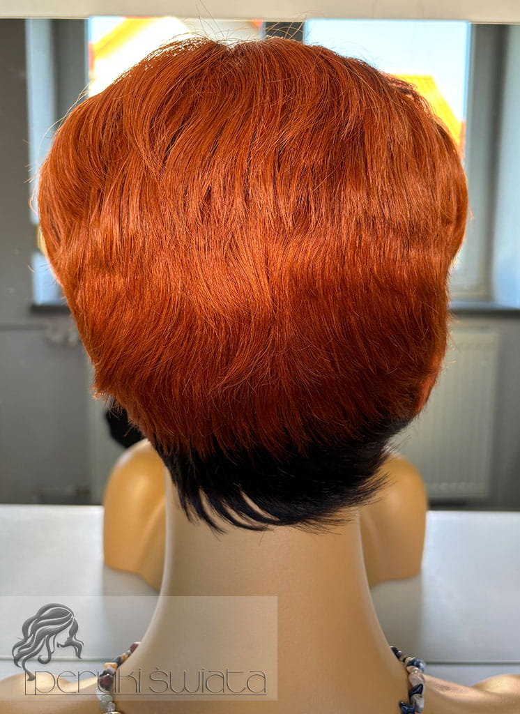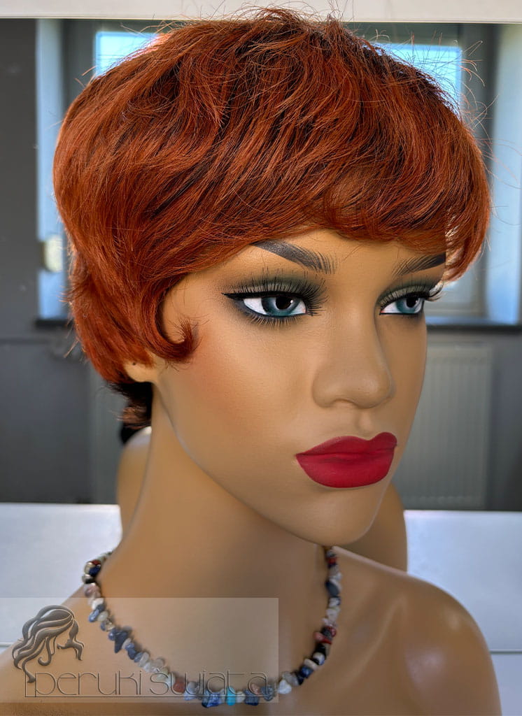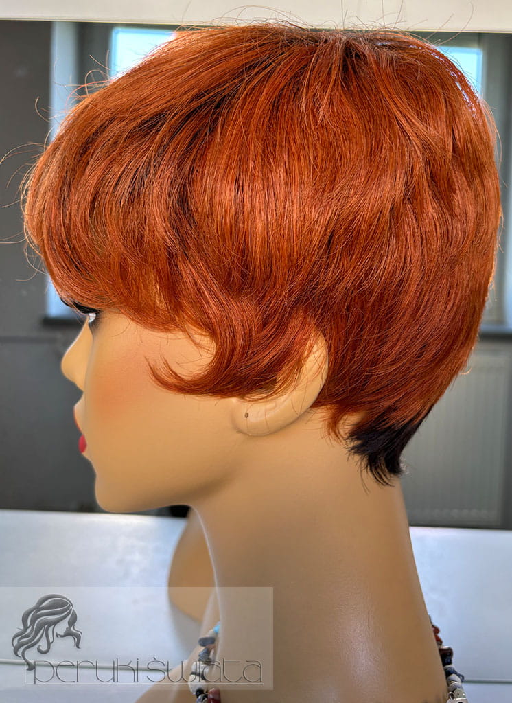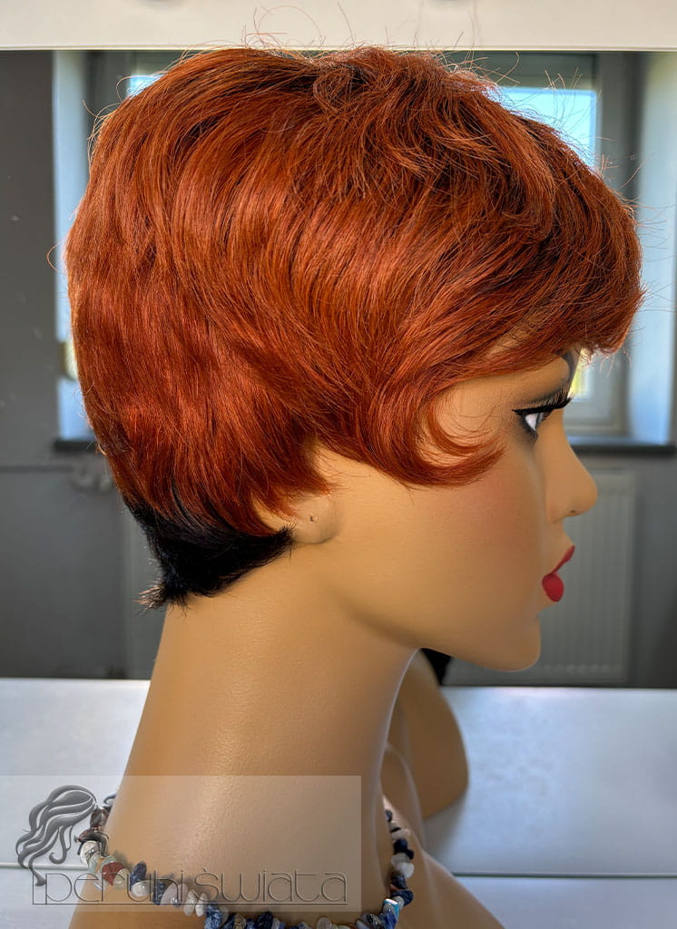 Peruka naturalna, model Palmer, włosy krótkie, kolor/ mix: tycjan, ciemny brąz