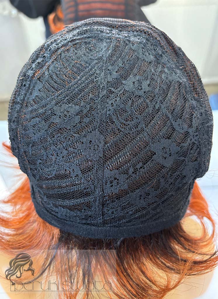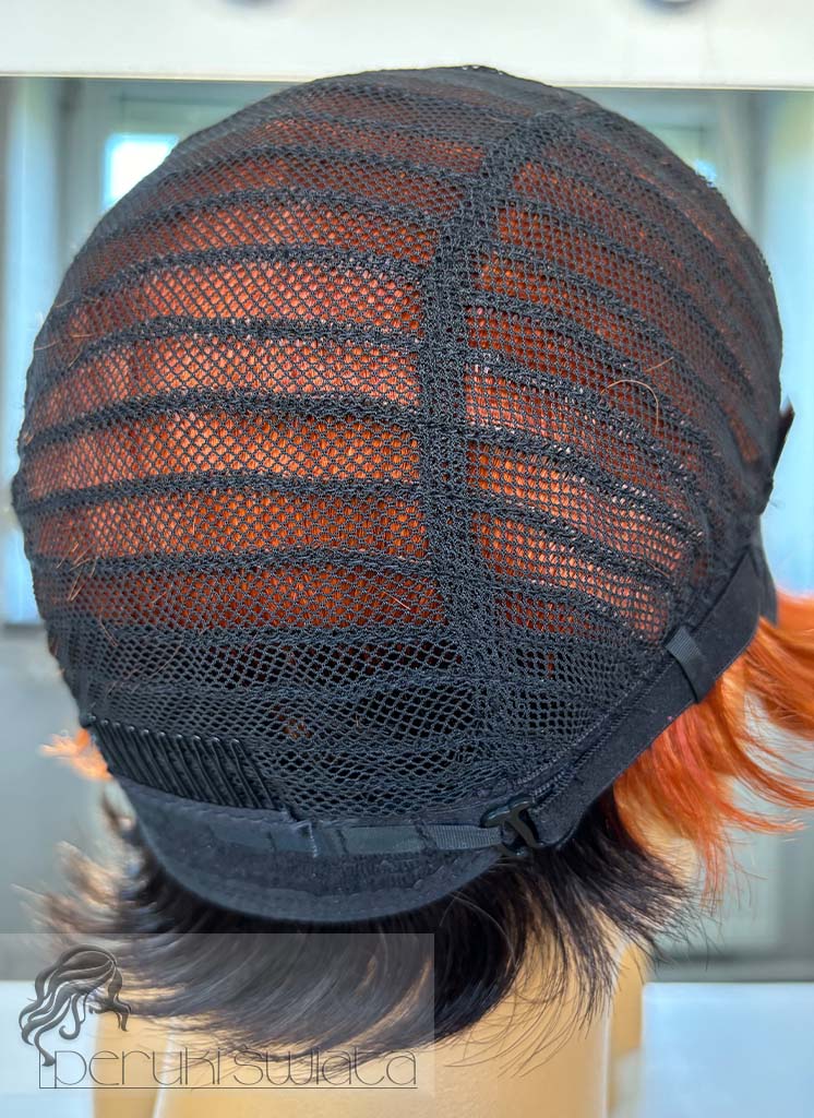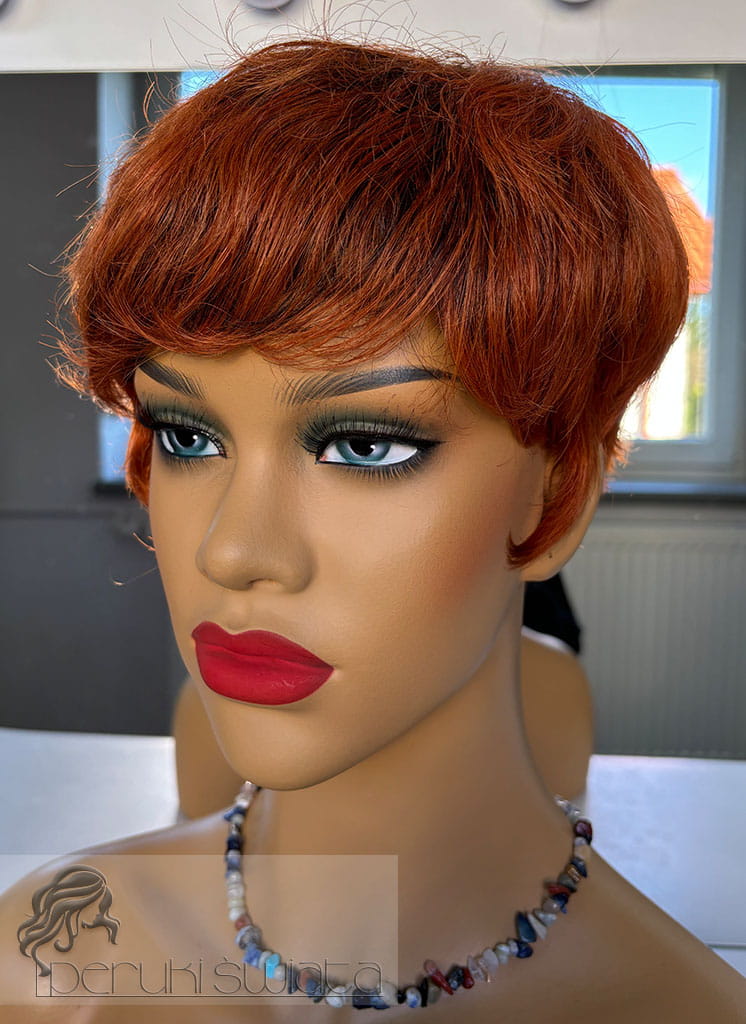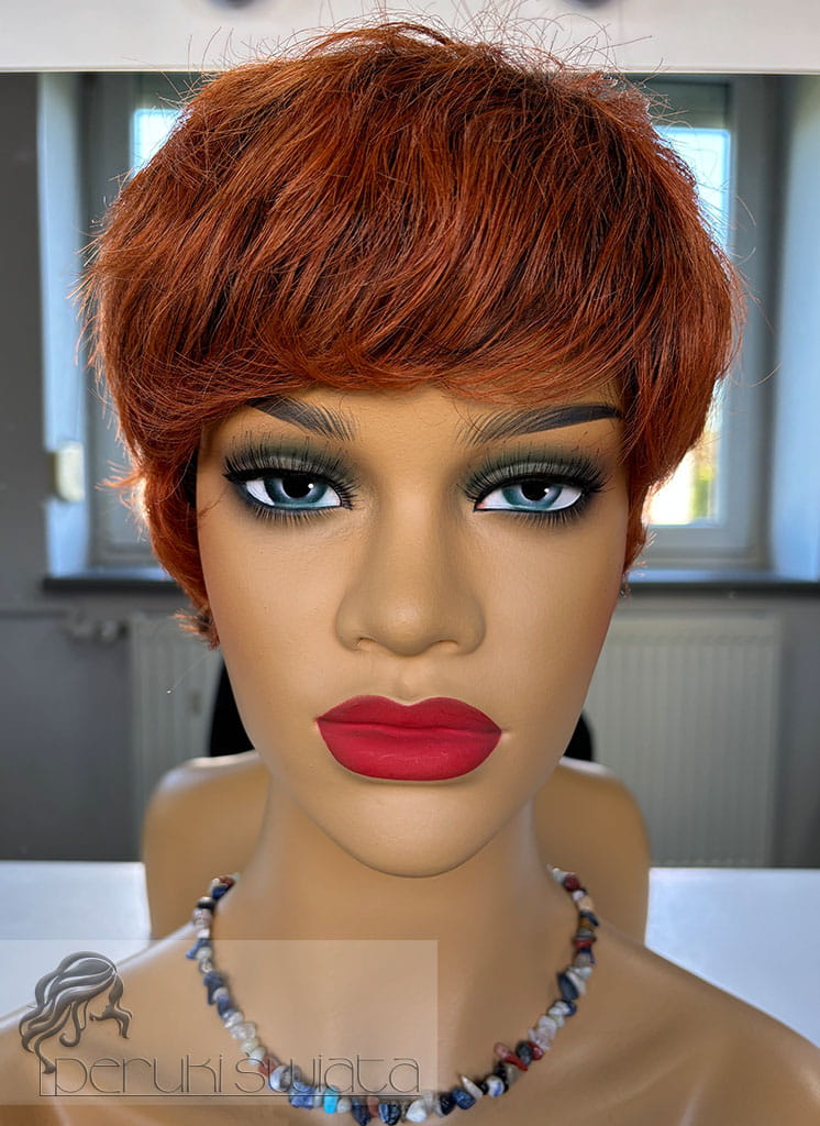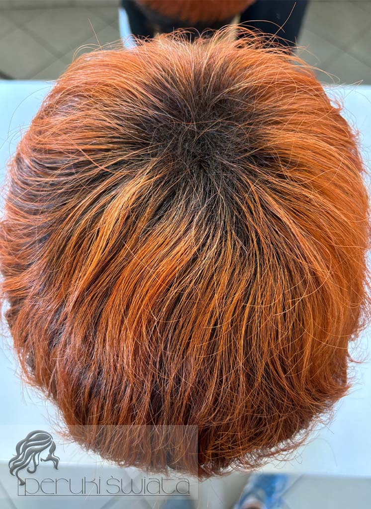 Peruka naturalna, model Palmer, włosy krótkie, kolor/ mix: tycjan, ciemny brąz