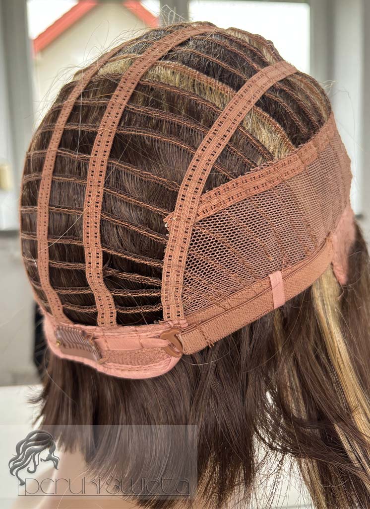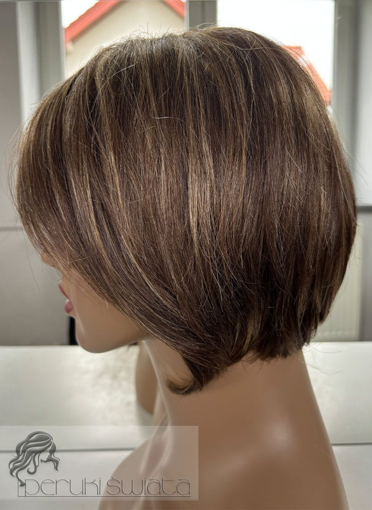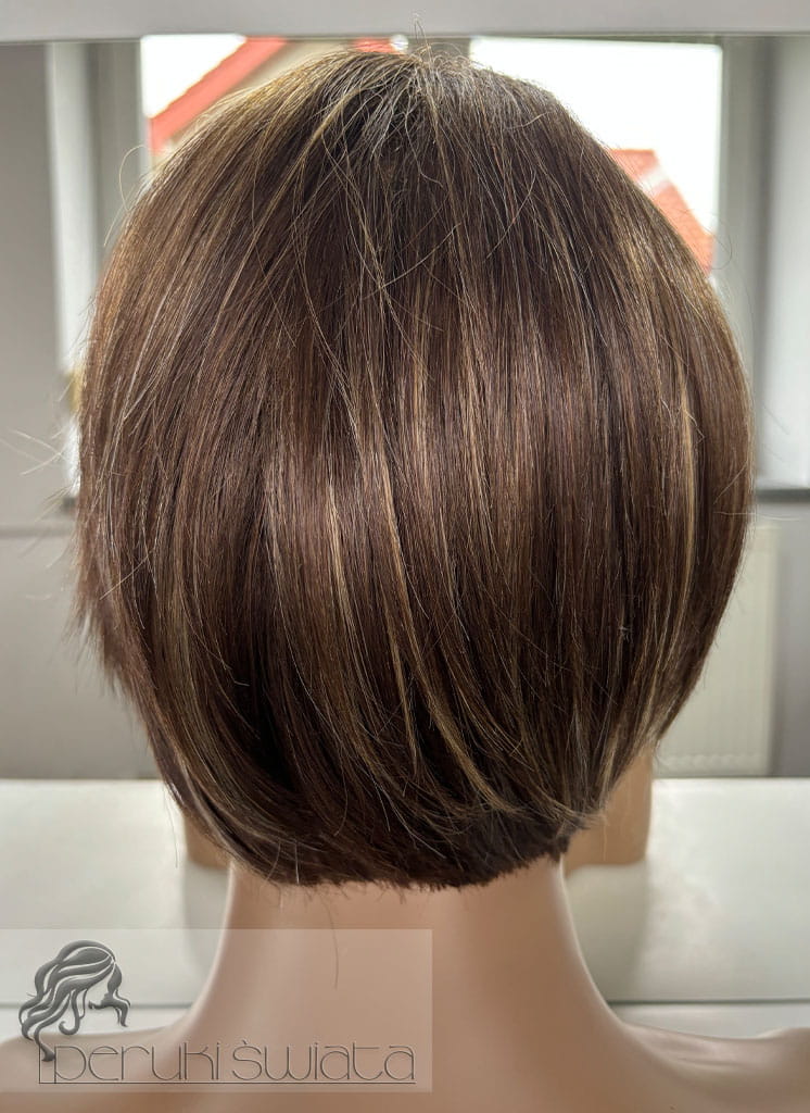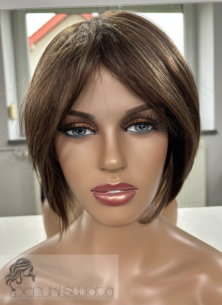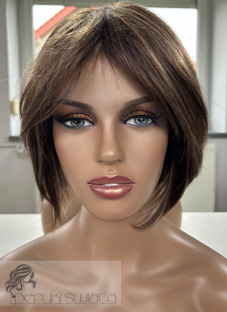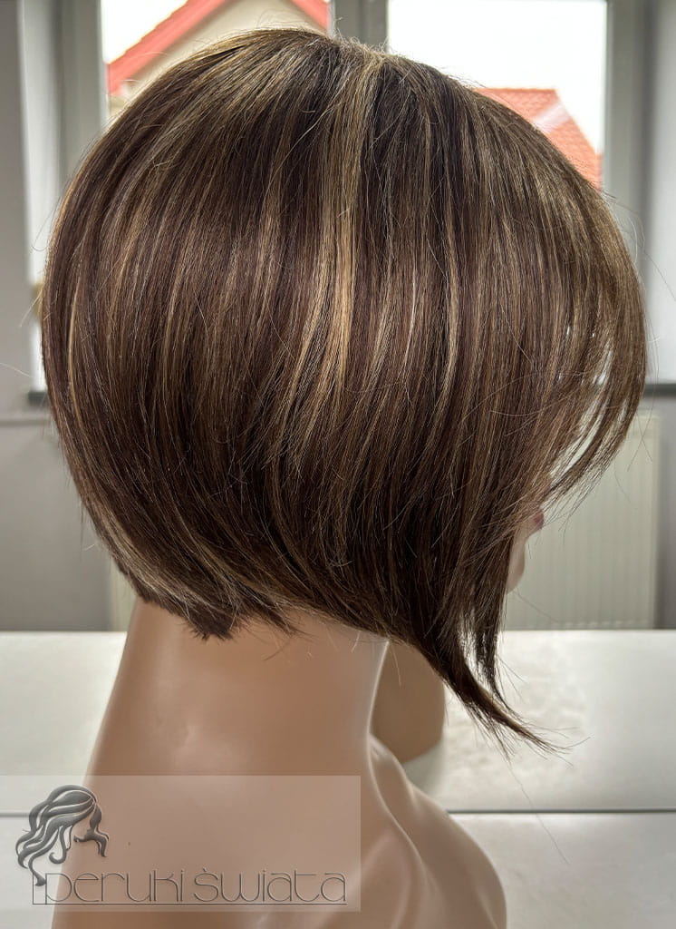 Peruka naturalna, model Zaylee, włosy krótkie, kolor: brąz z pasemkami blondu