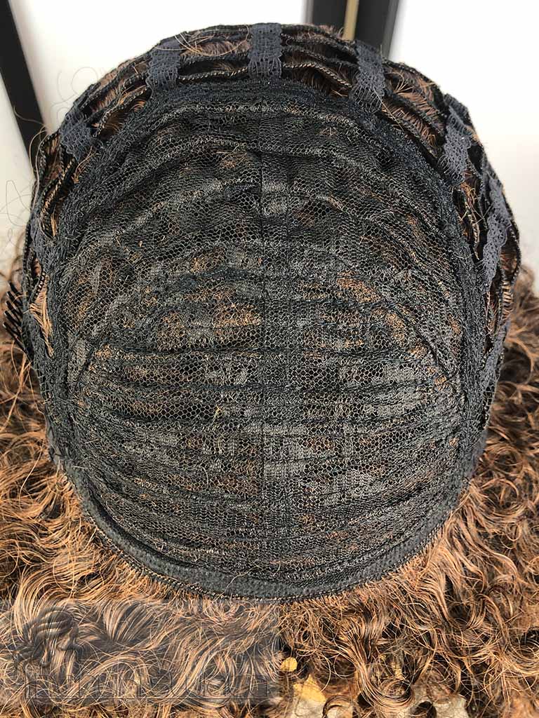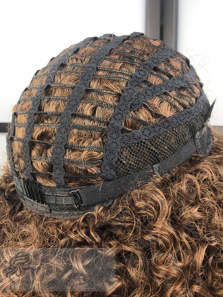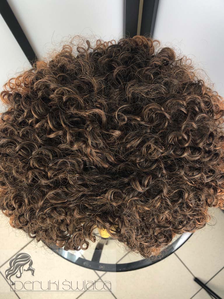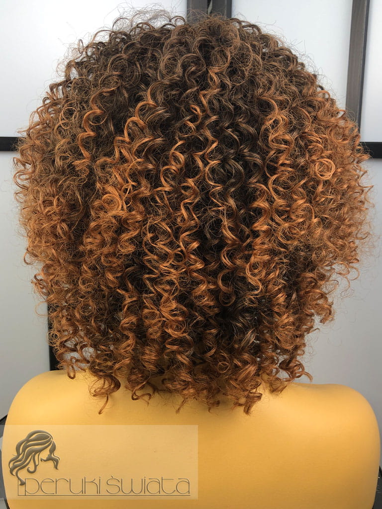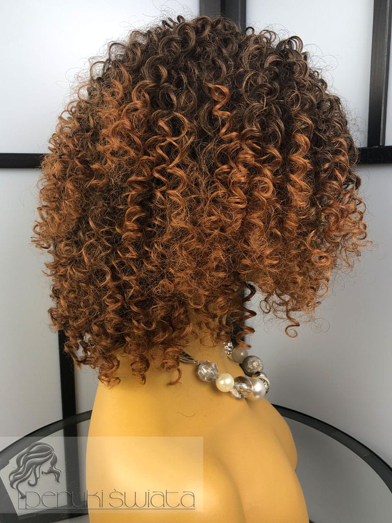 Peruka syntetyczna, model Adela, kanekalon, afroloki, sombre: jasny brąz ze złocistym blondem