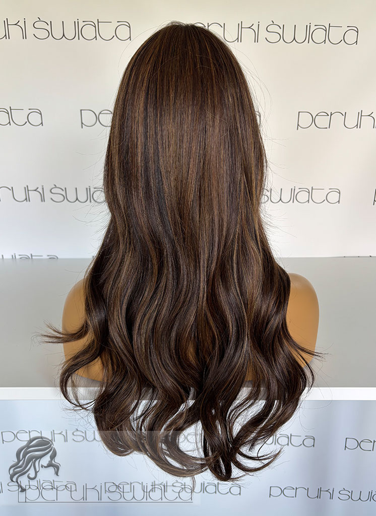 Peruka syntetyczna, model Amaris, monotop, mix ciepłych brązów z miodowym blondem