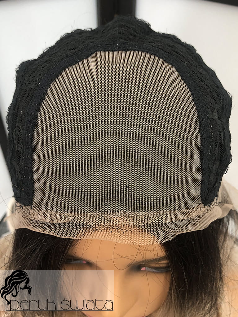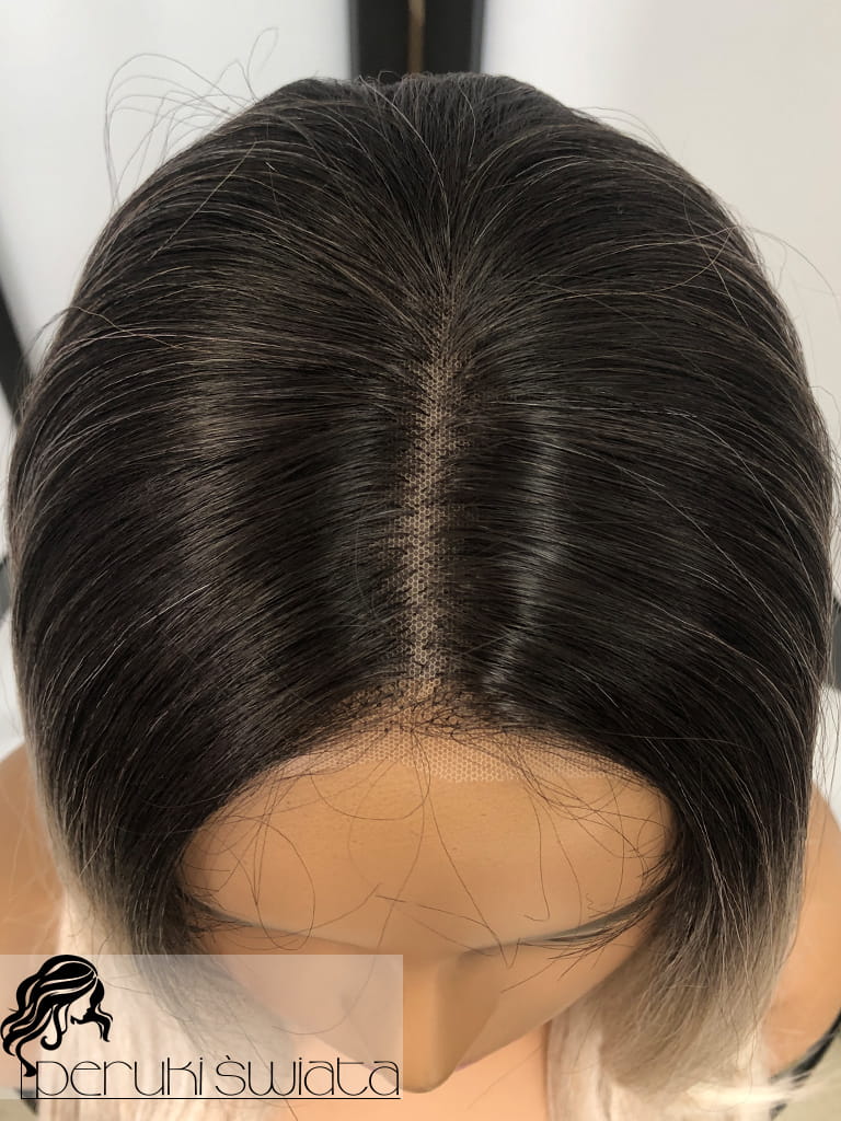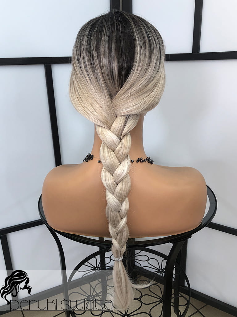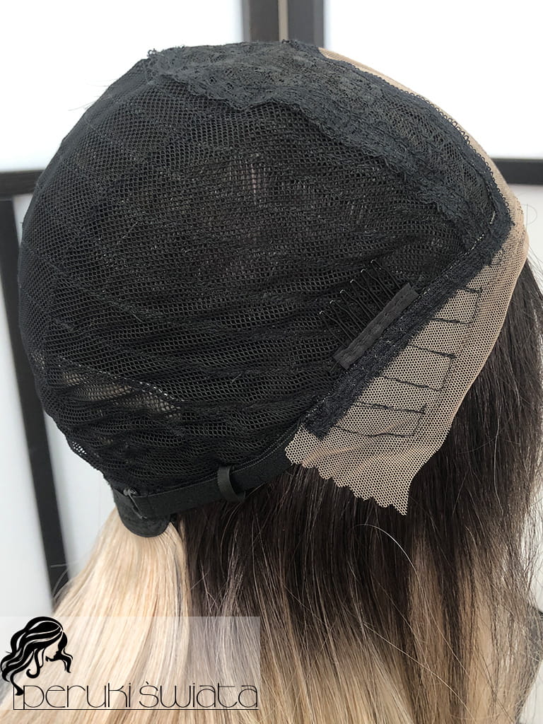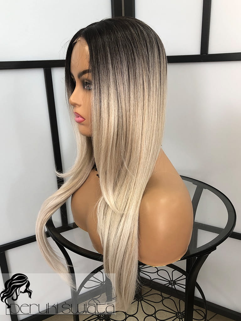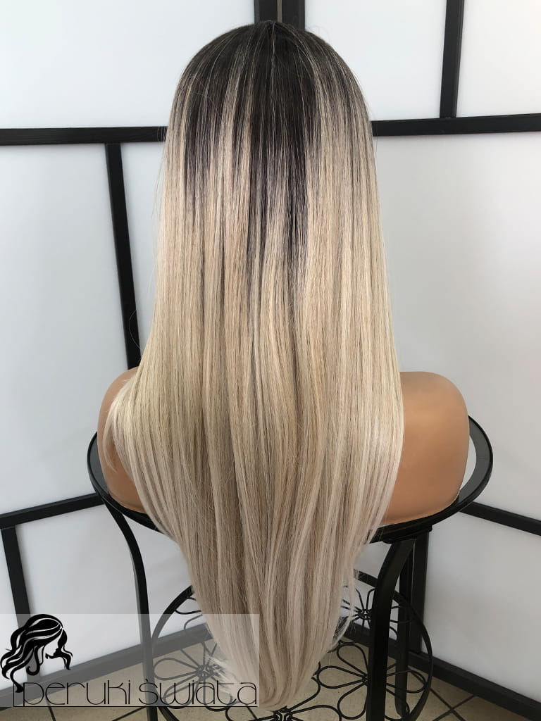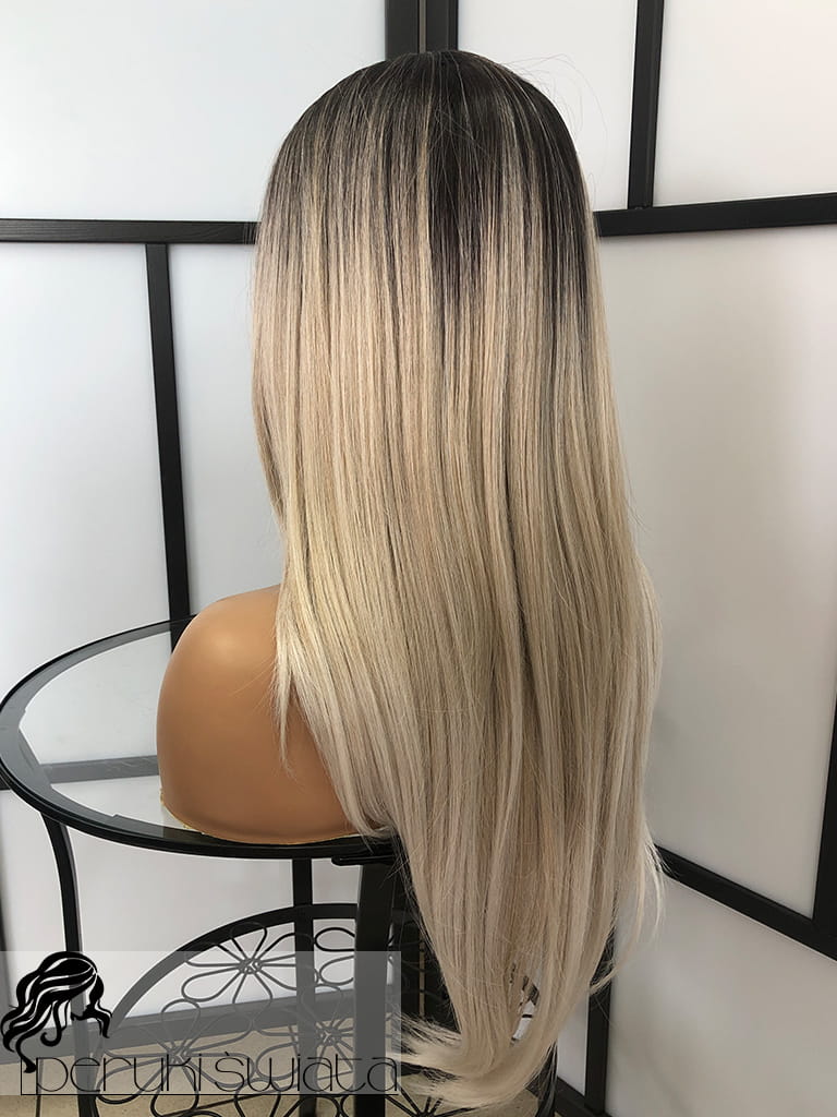 Peruka syntetyczna, model Ariela, monotop, kolor:mix chłodnych popielatych blondów na czarnym odroście (ombre)