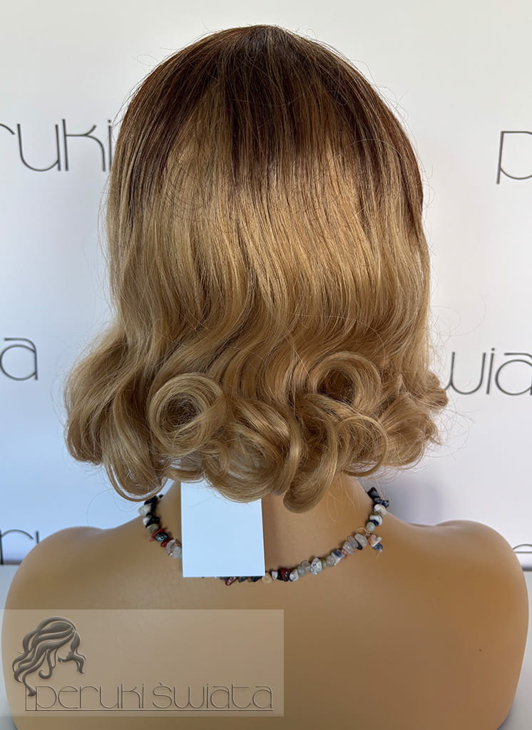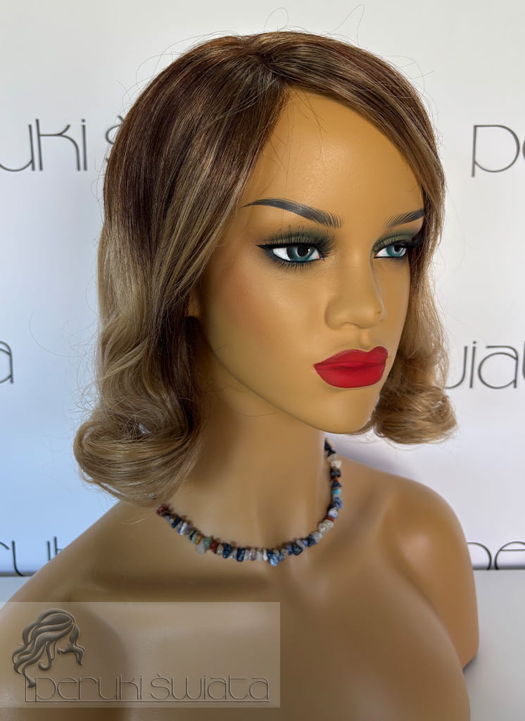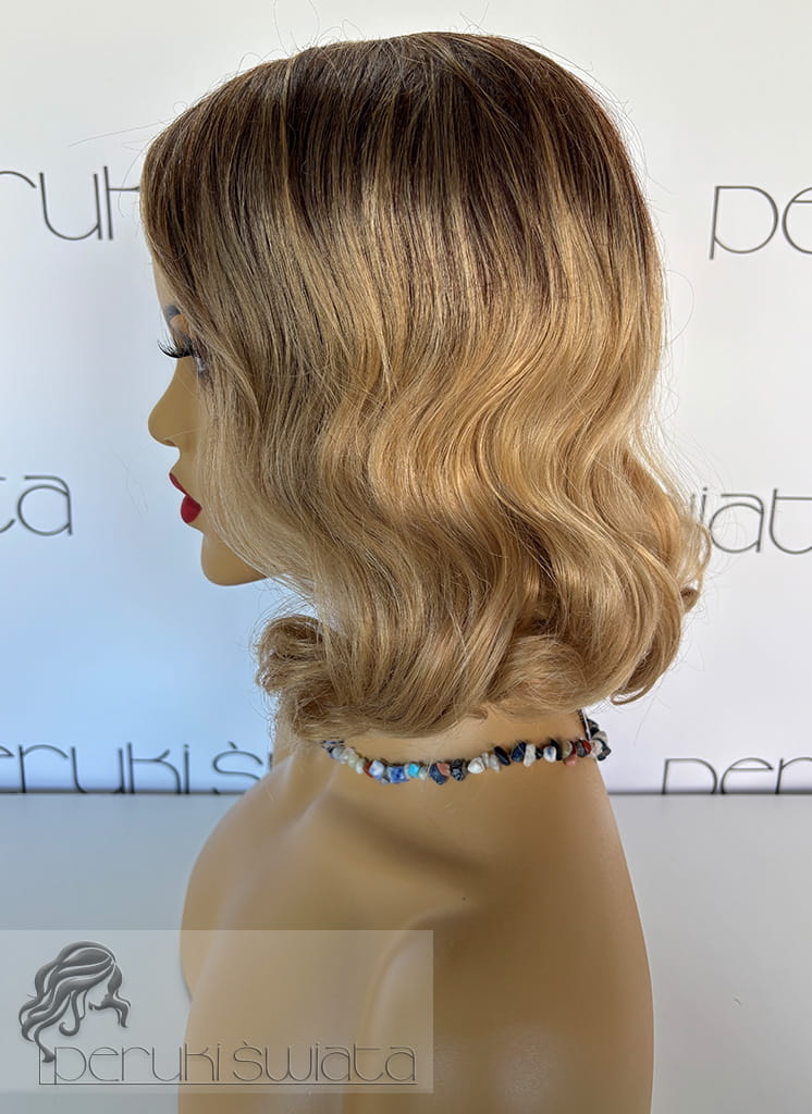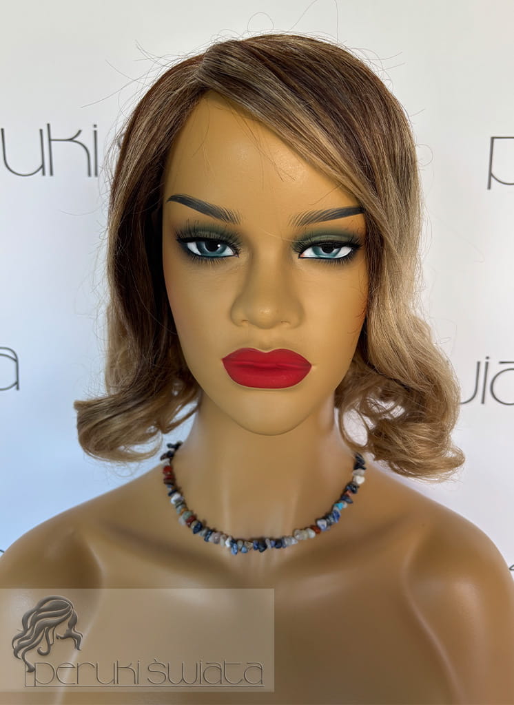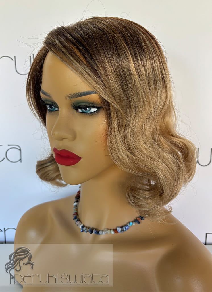 Peruka syntetyczna, model Clara, sombre, złocisty blond na odroście w kolorze ciemnego, ciepłego blondu