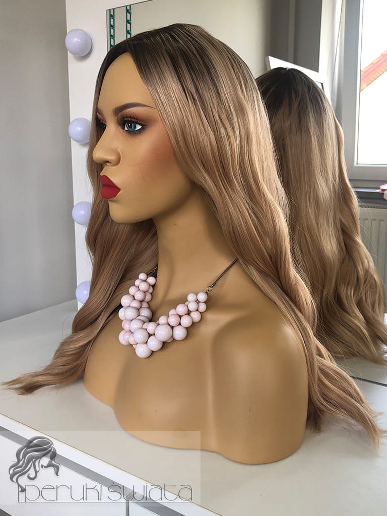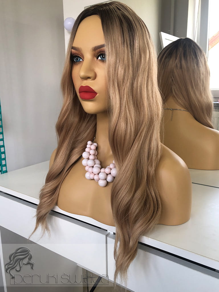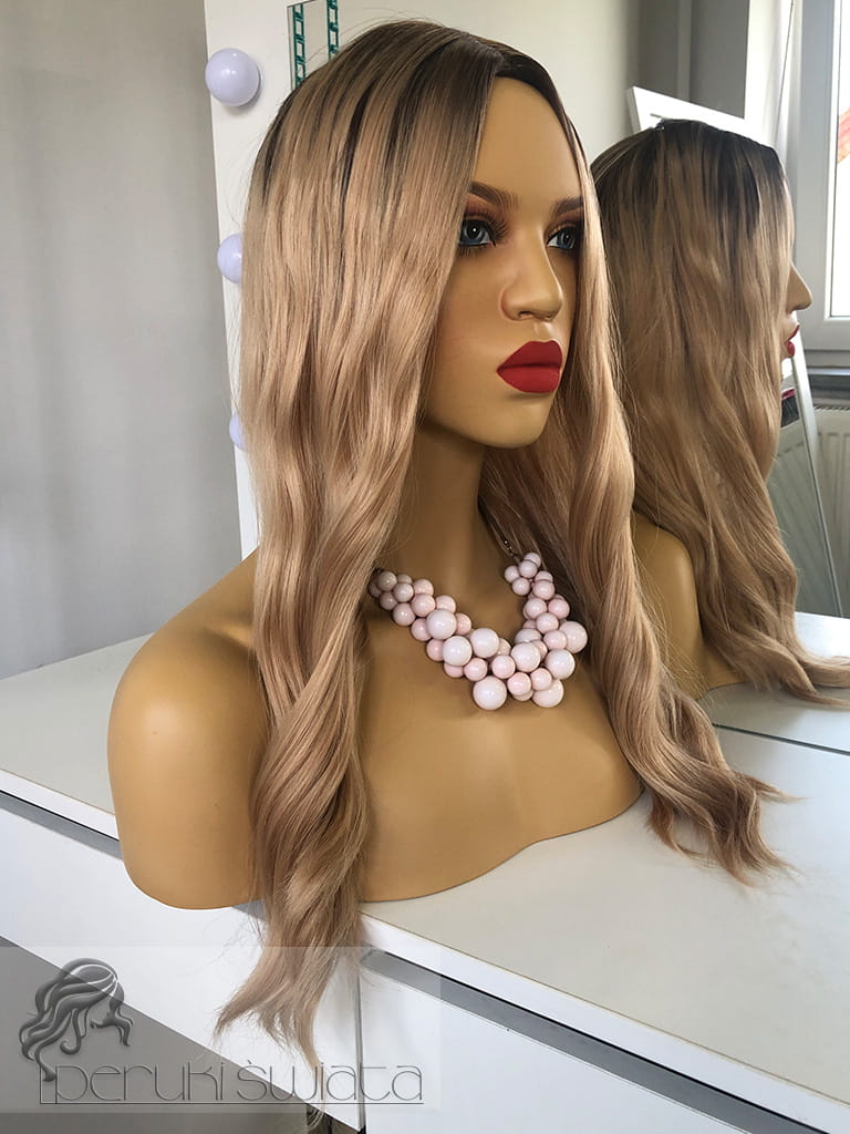 Peruka syntetyczna, model Elodie, kanekalon japoński, mix jasnych, ciepłych blondów na odroście