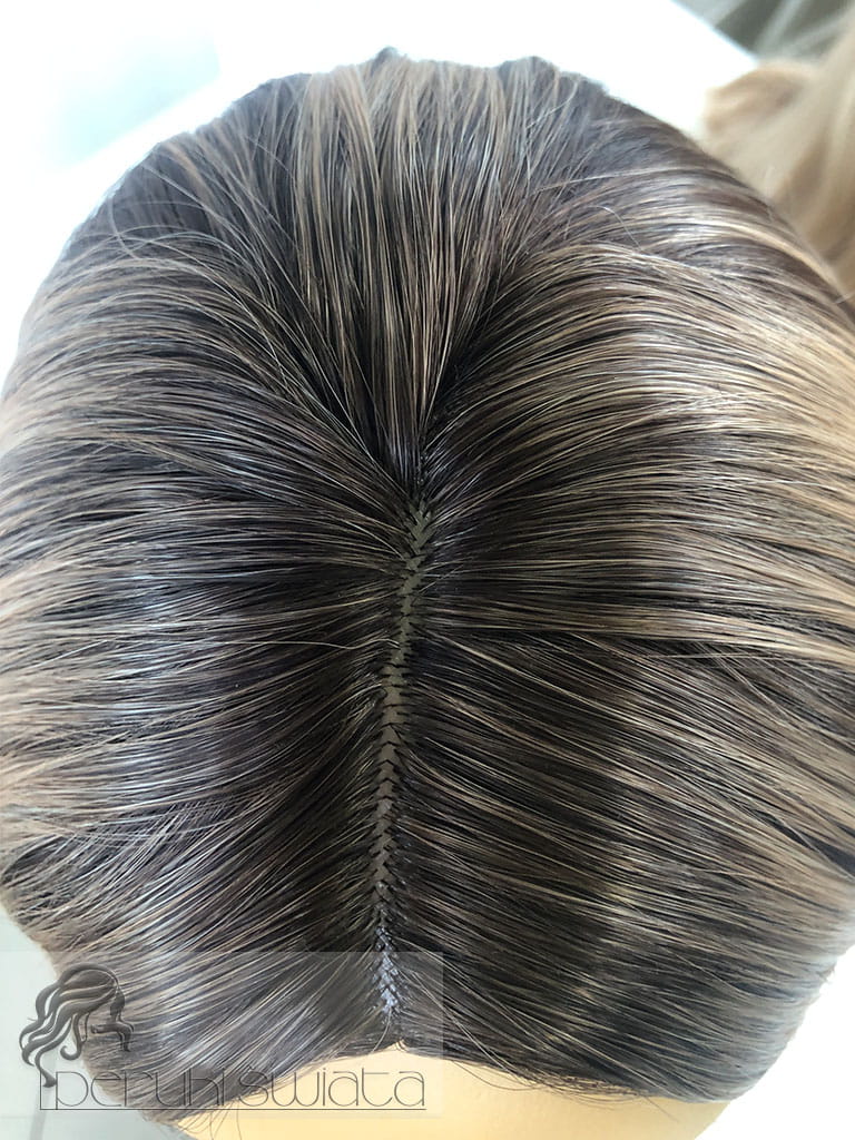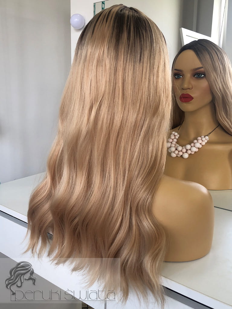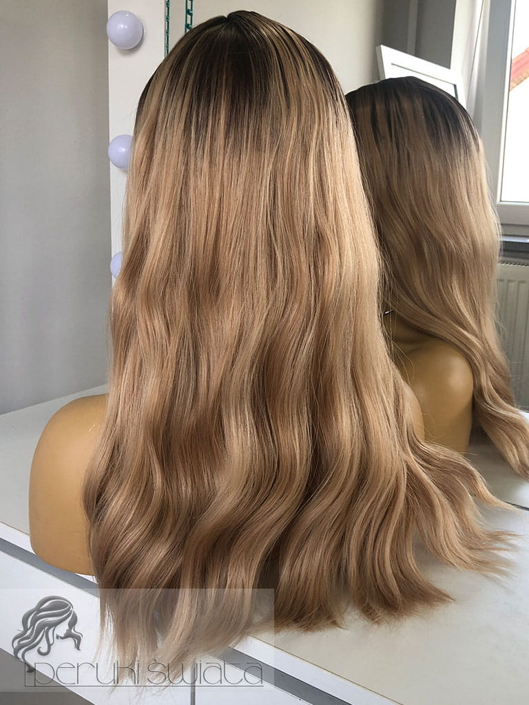 Kolor: mix jasnych, ciepłych blondów na ciemnym odroście