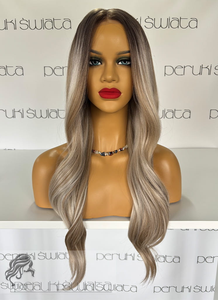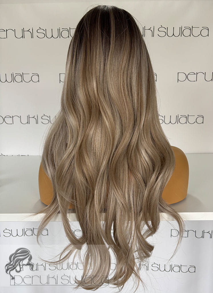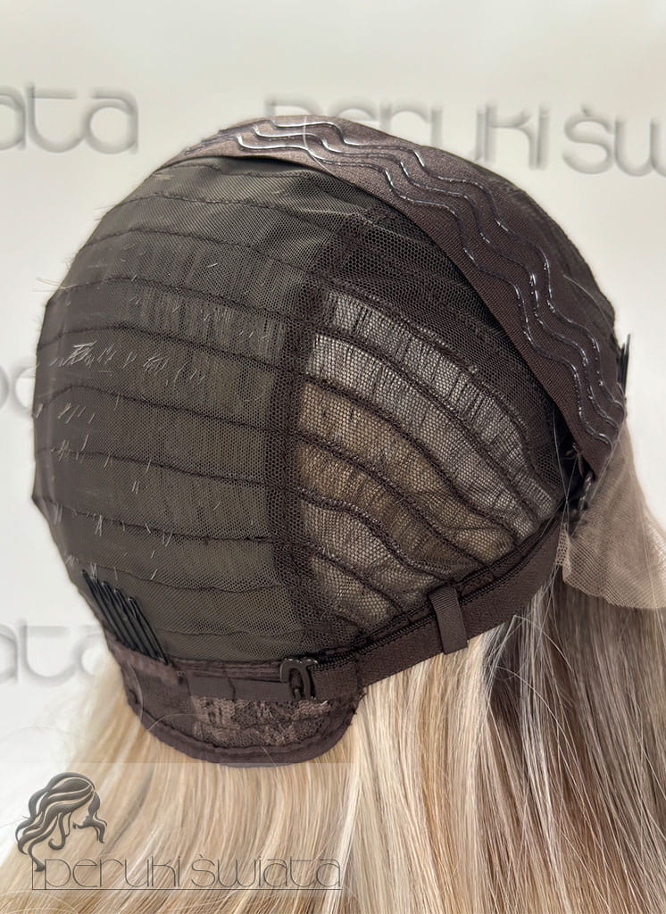 Peruka syntetyczna, model Indi, czepek typu: full lace, kanekalon termoplastyczny, mix jasnych i ciemnych blondów odroście