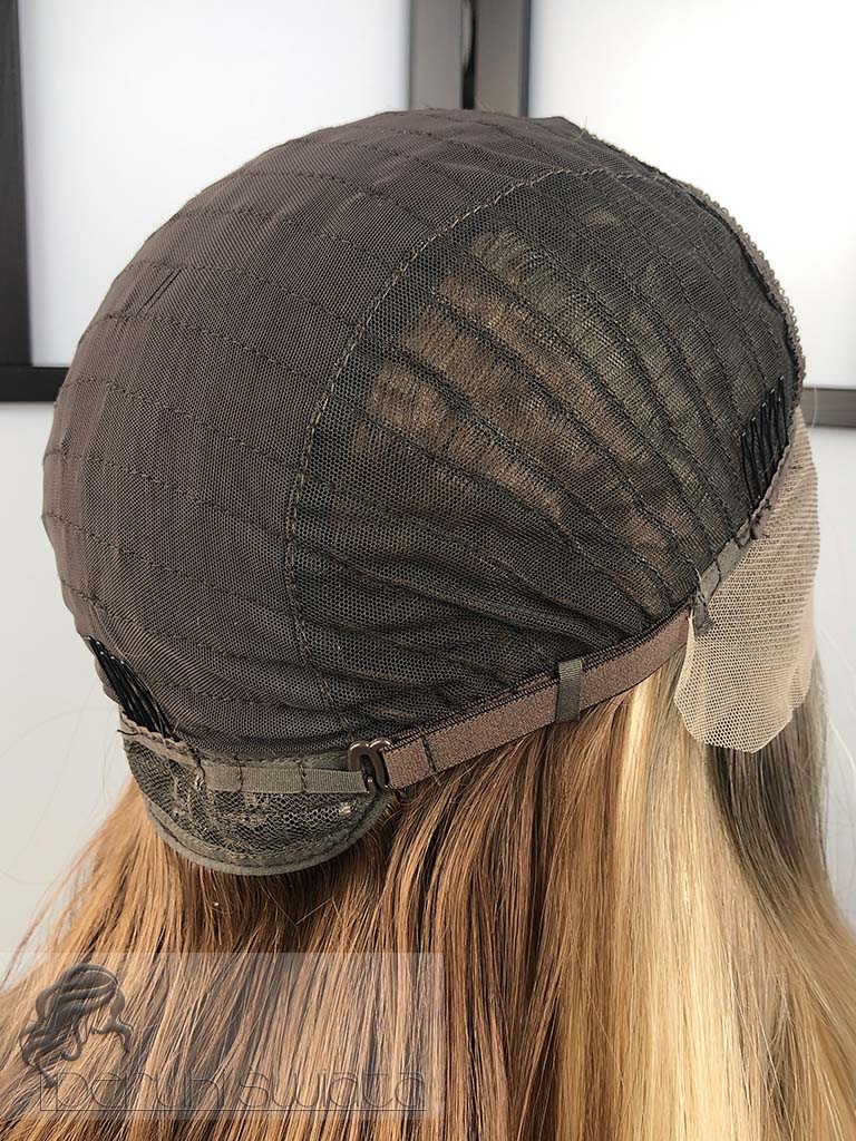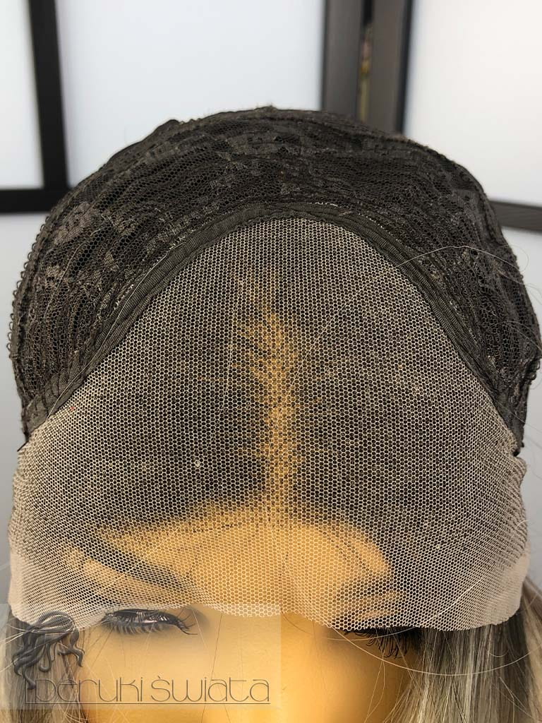 Czepek typu: full lace front (możliwość przestylizowania przedziałka w obrębie skalpu, podcięcia grzywki, efekt wyrastania włosów z głowy, rozmyta linia przednia peruki)