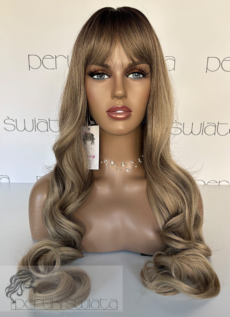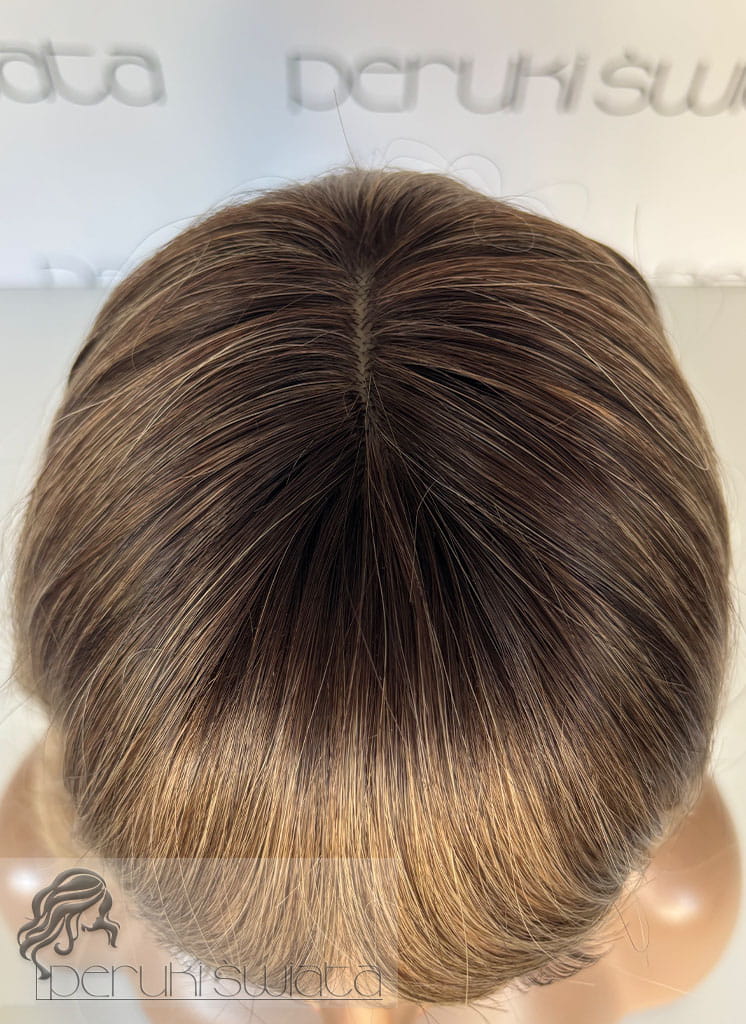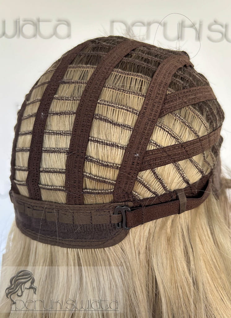 Peruka syntetyczna Alison, kanekalon termoplastyczny, mix słowiańskich blondów na subtelnym odroście z jaśniejszymi końcówkami