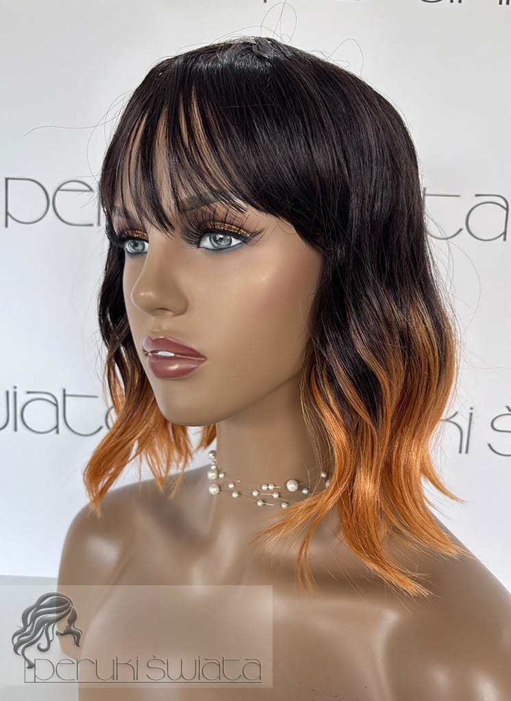 Peruka syntetyczna Amanita , bob z grzywką, fale, kanekalon japoński