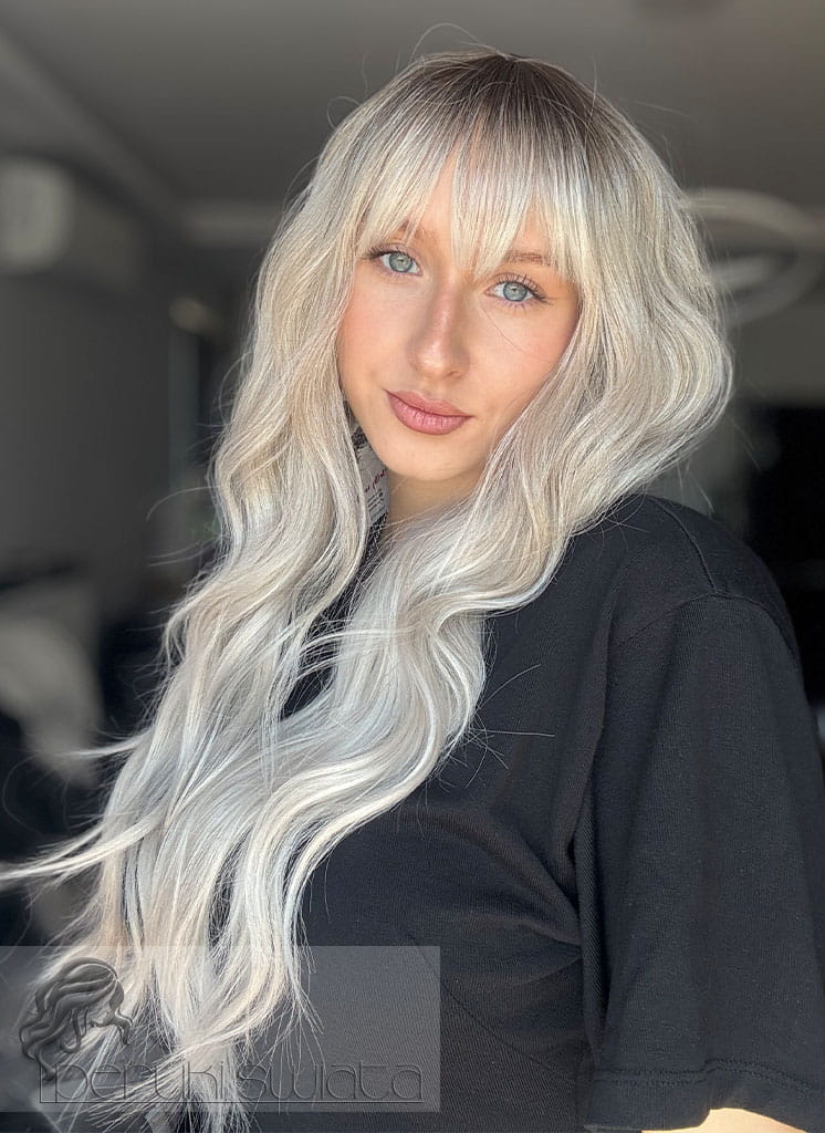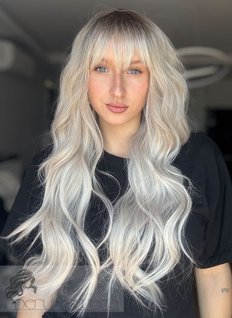 Peruka syntetyczna Amy, kanekalon termoplastyczny, platynowy blond z refleksami ciepłego blondu na odroście