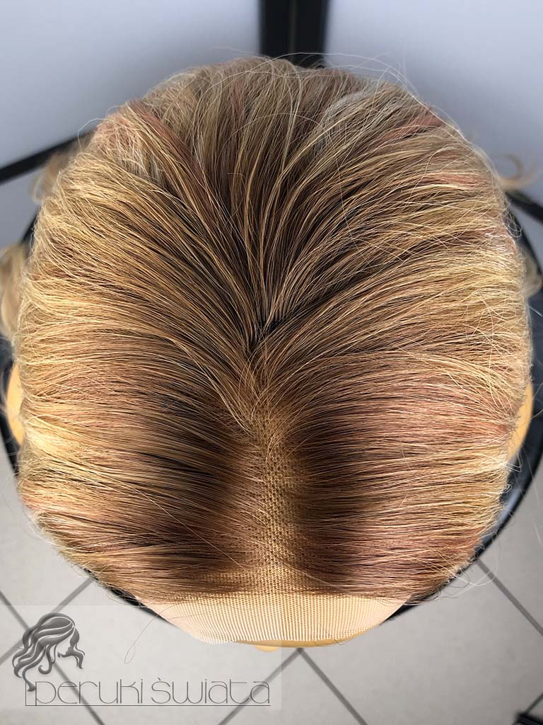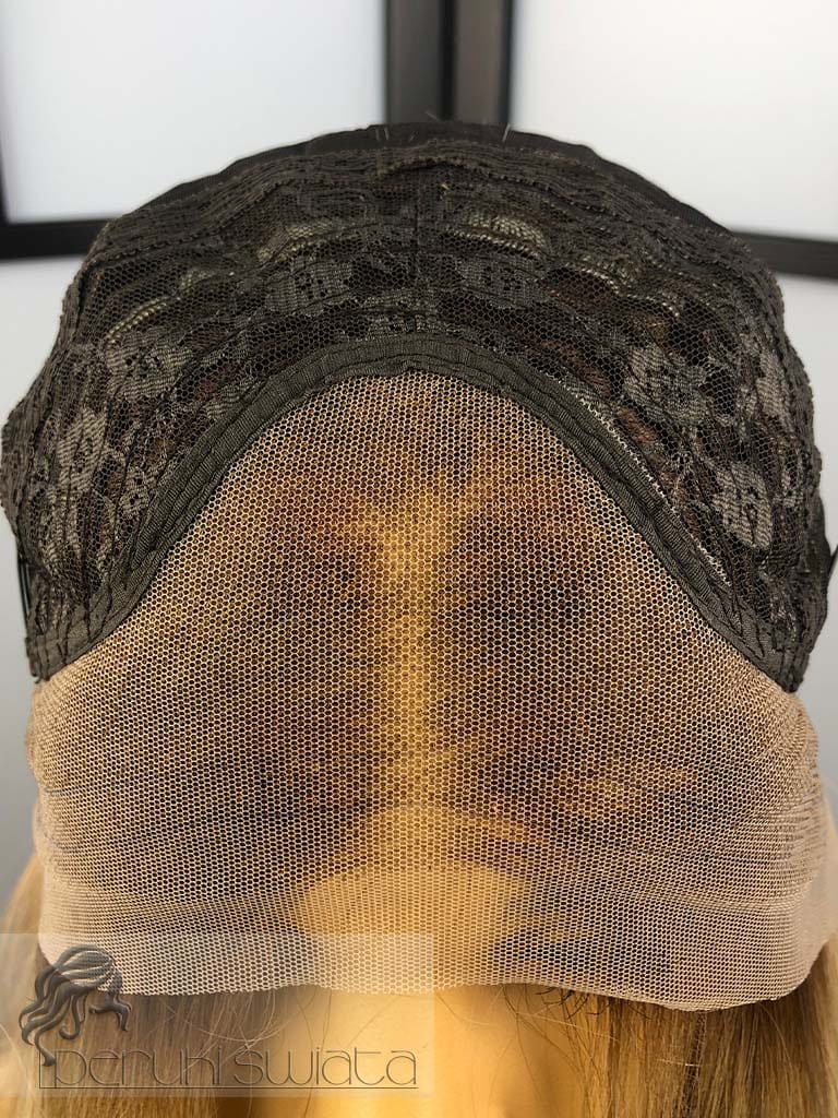 Czepek typu:full lace front (możliwość przestylizowania przedziałka w obrębie skalpu oraz docięcia grzywki, efekt wyrastania włosów z głowy, rozmyta linia przednia peruki)