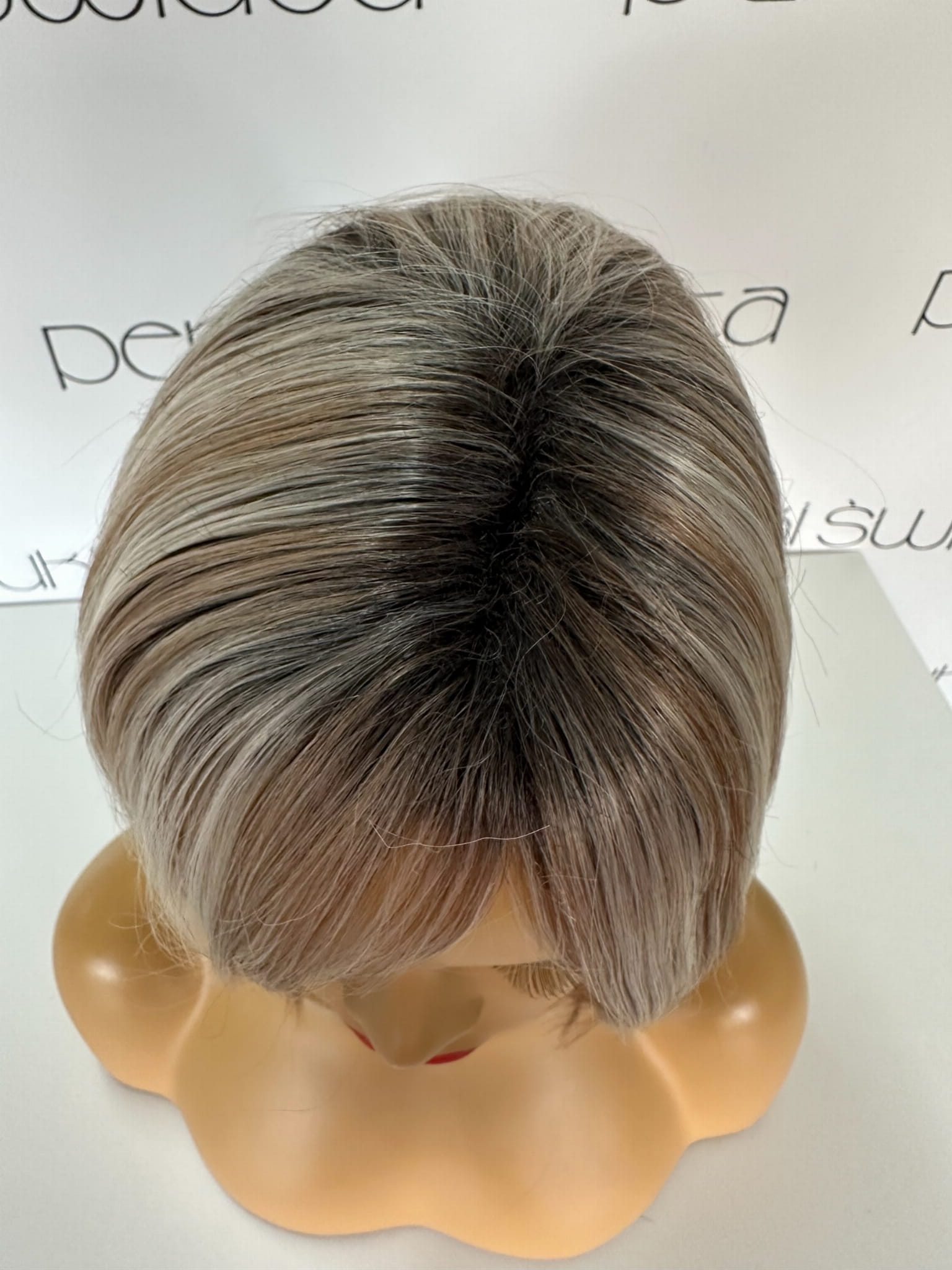 Mix ciepłego średniego blondu z refleksami jasnej platyny na odroście