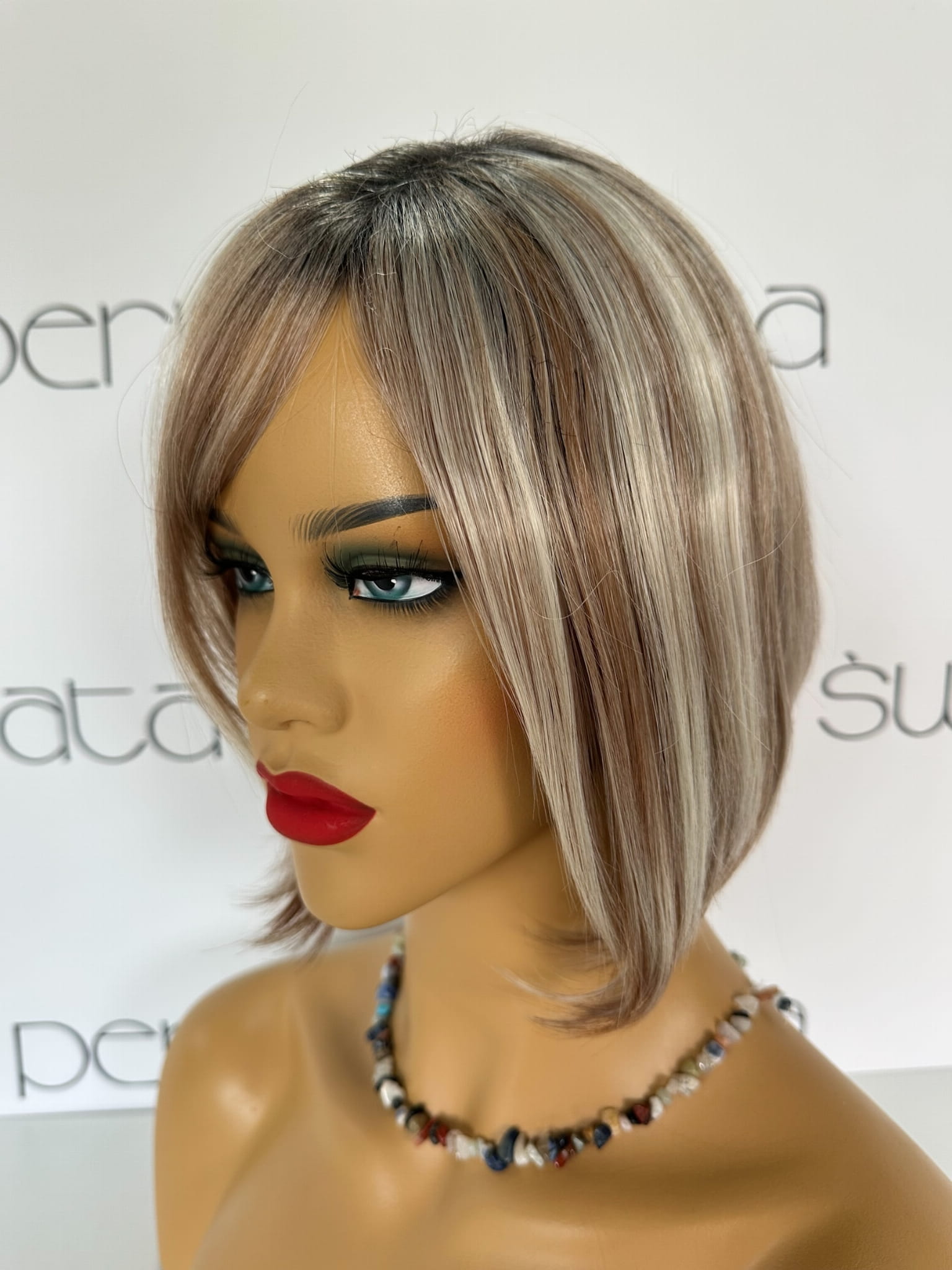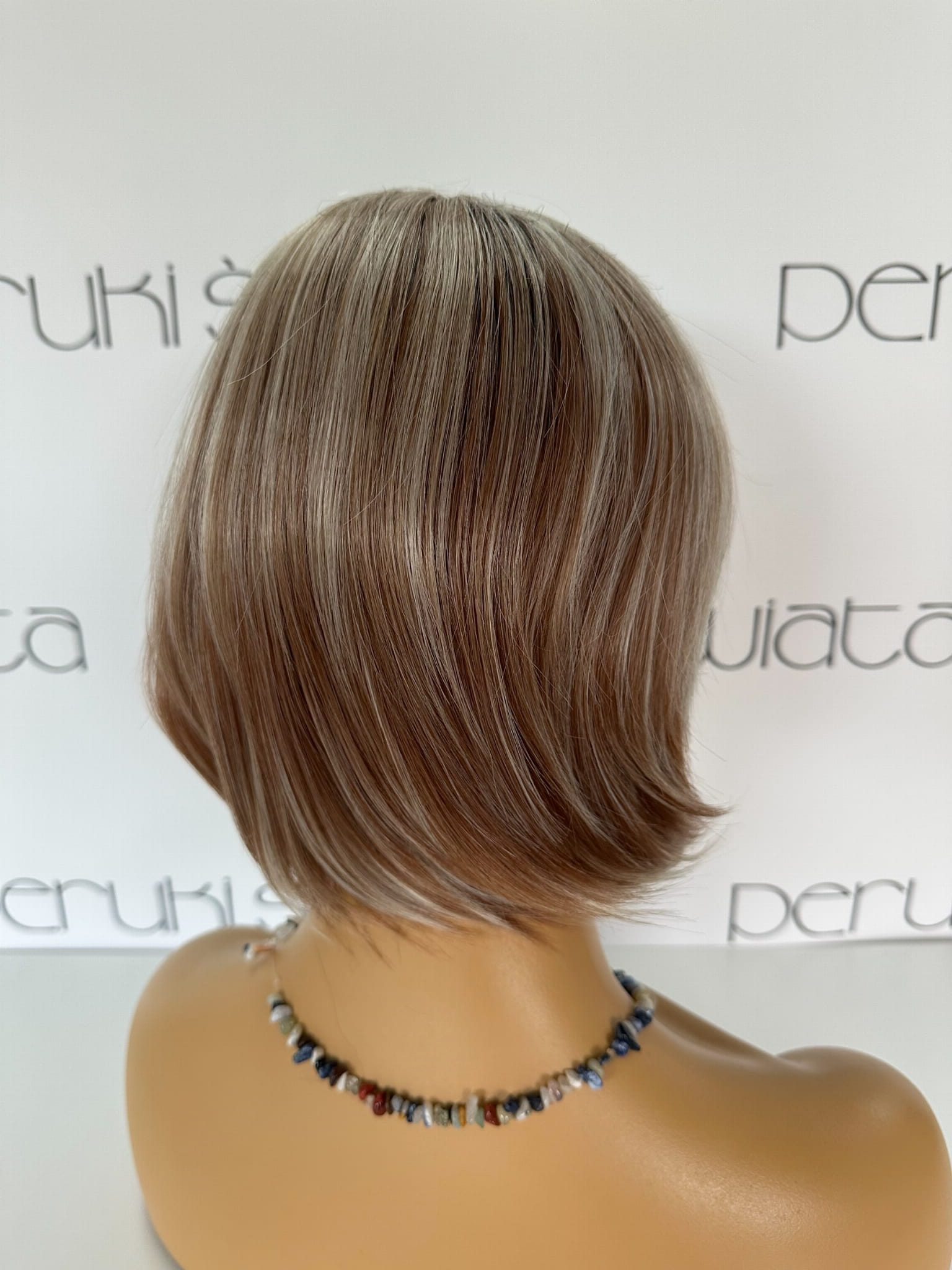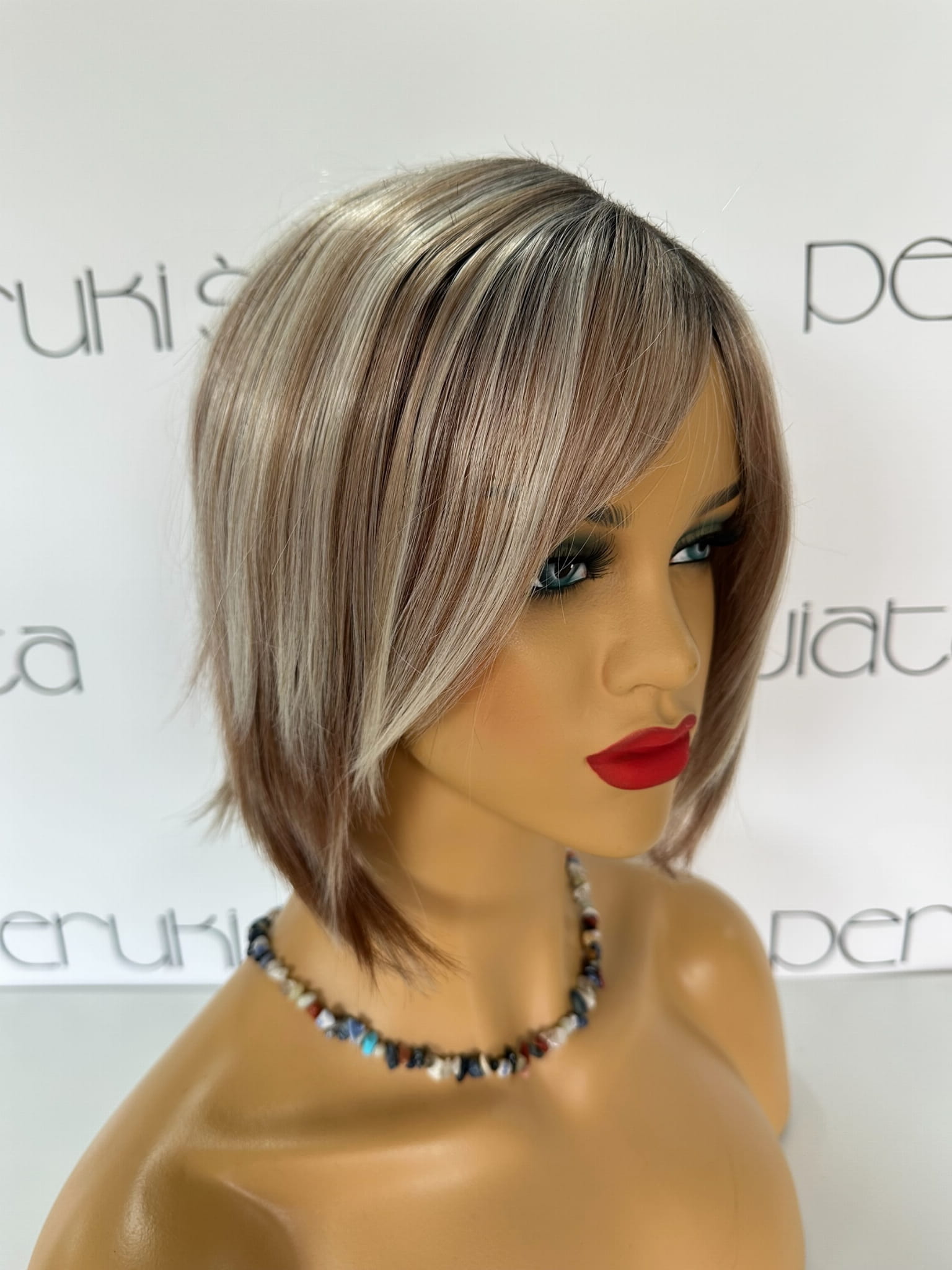Peruka syntetyczna Antonina, bob z grzywką, mix blondów na odroście