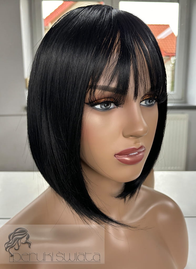 Peruka syntetyczna Anya, bob, włosy miękkie, lejące, kolor: czerń