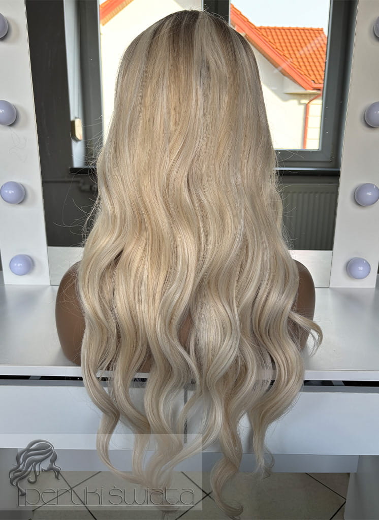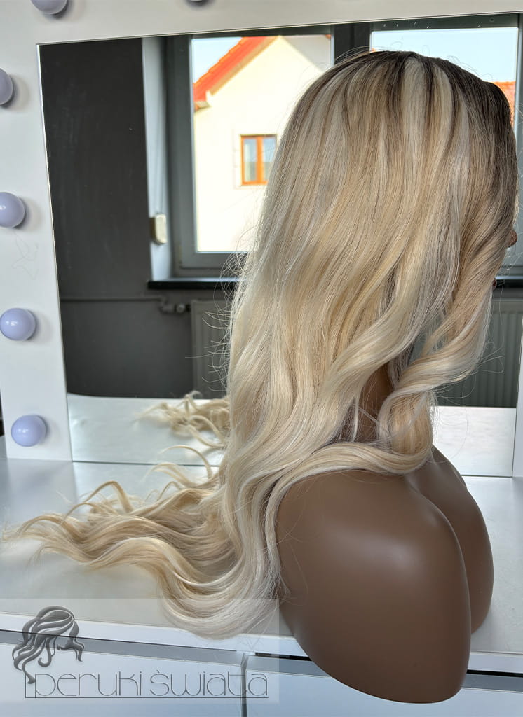 Peruka syntetyczna Atena, fale, kolor: jasny blond na odroście