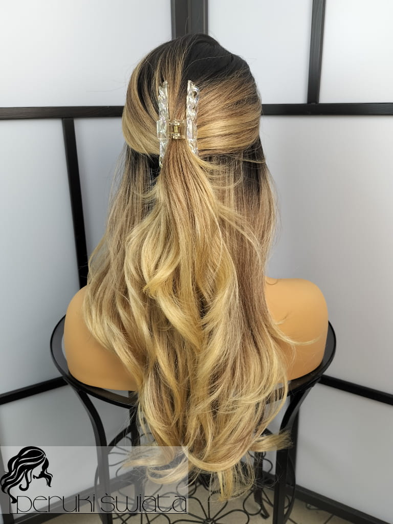 Peruka syntetyczna Atena, kanekalon japoński, kolor: mix ciepłych blondów na odroście