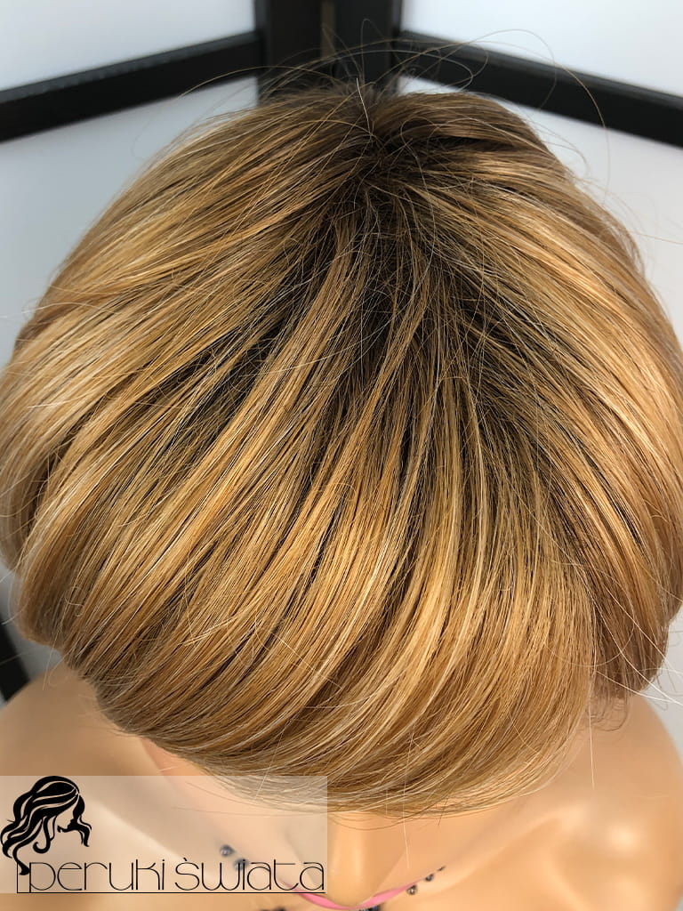 Peruka syntetyczna Basia, kanekalon typu "true hair", kolor: mix ciepłych średnich na subtelnym odroście