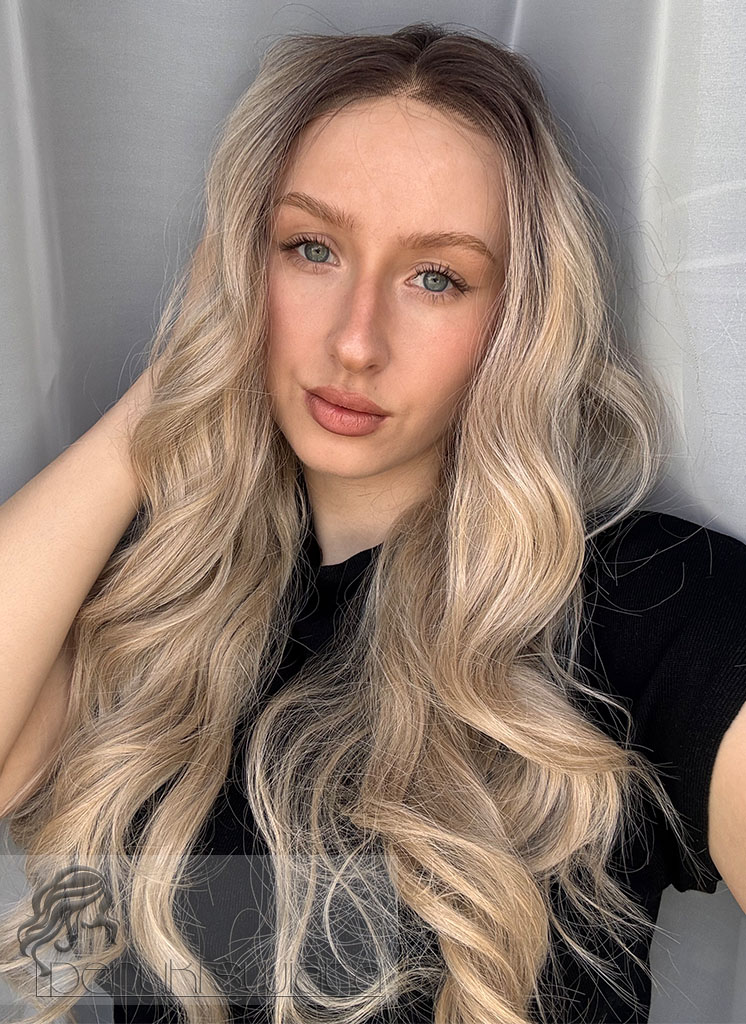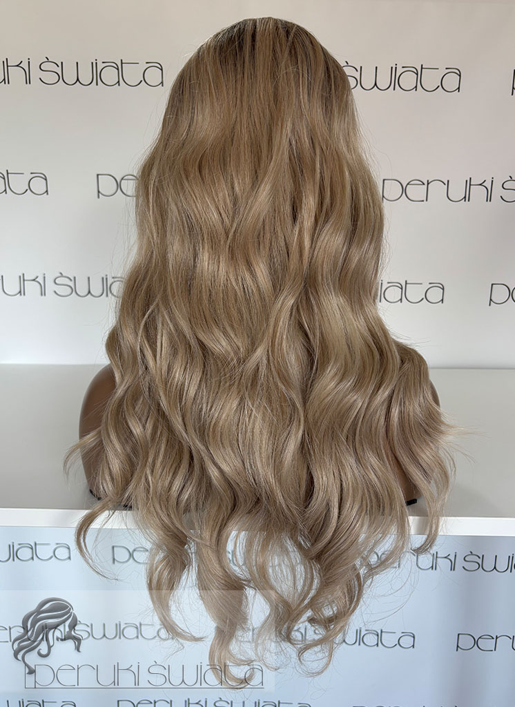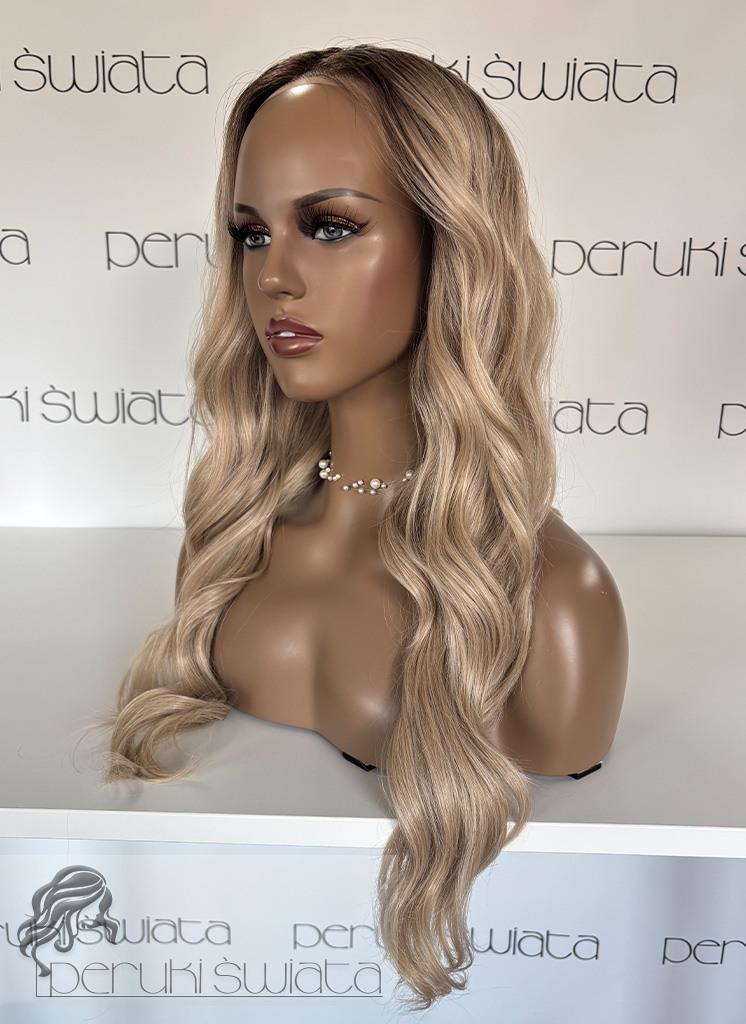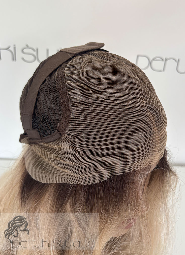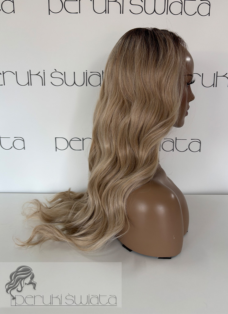 Peruka syntetyczna Beatrix, czepek typu: full lace, kanekalon termoplastyczny, mix jasnych blondów na odroście