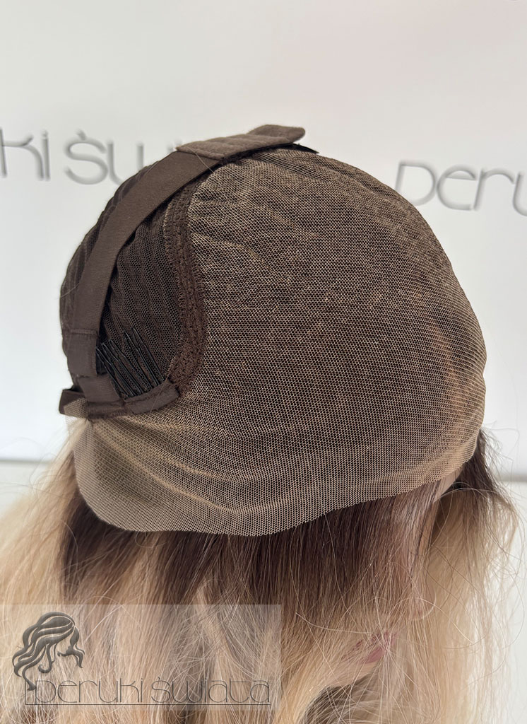 Czepek typu: full lace front (możliwość dowolnego zaczesania przedziałka w obrębie siateczki, podcięcia grzywki, efekt wyrastania włosów z głowy, rozmyta linia przednia peruki)