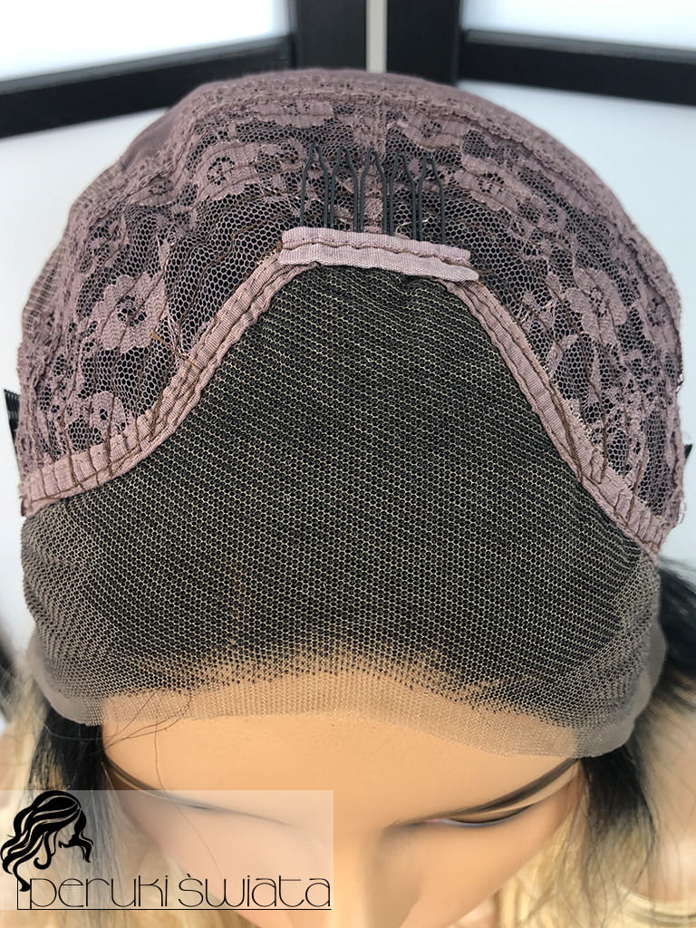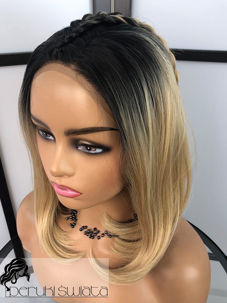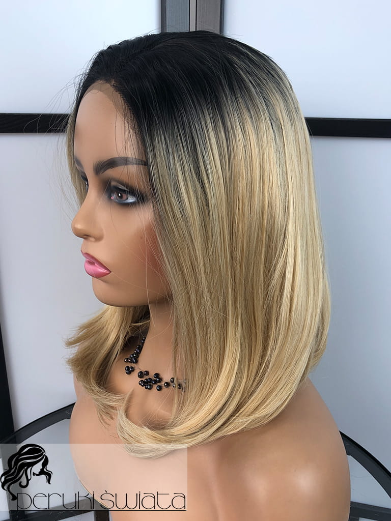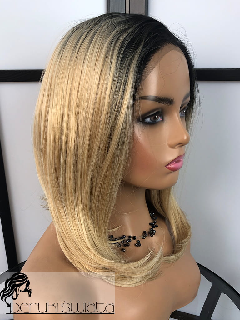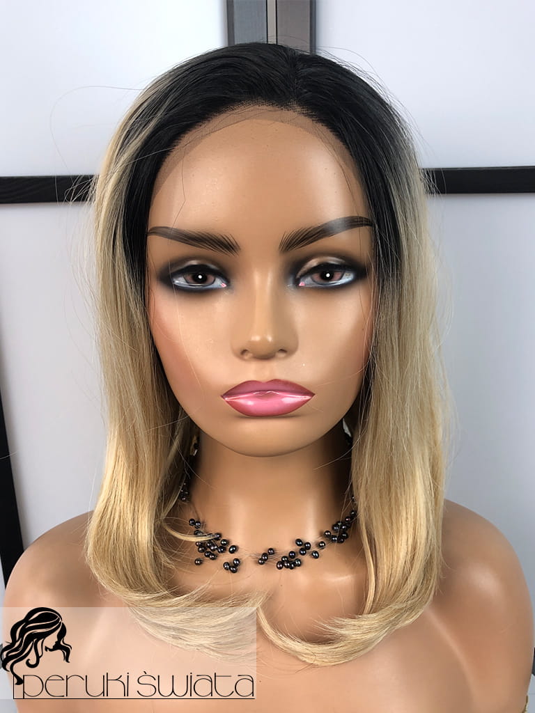 Peruka syntetyczna Bedelia, kanekalon termoplastyczny, bob, full lace front, kolor: blond na odroście