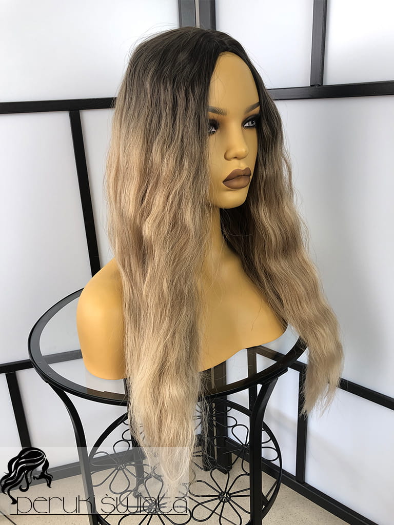 Peruka syntetyczna Blaise, fale, kolor: chłodny średni blond na odroście