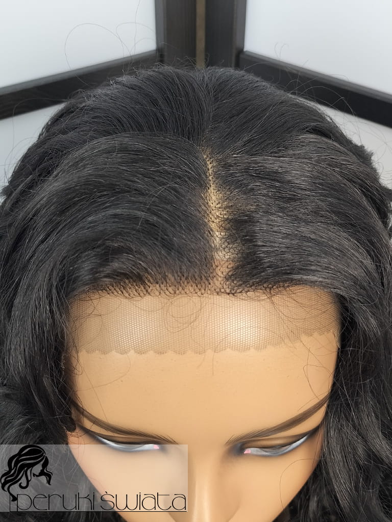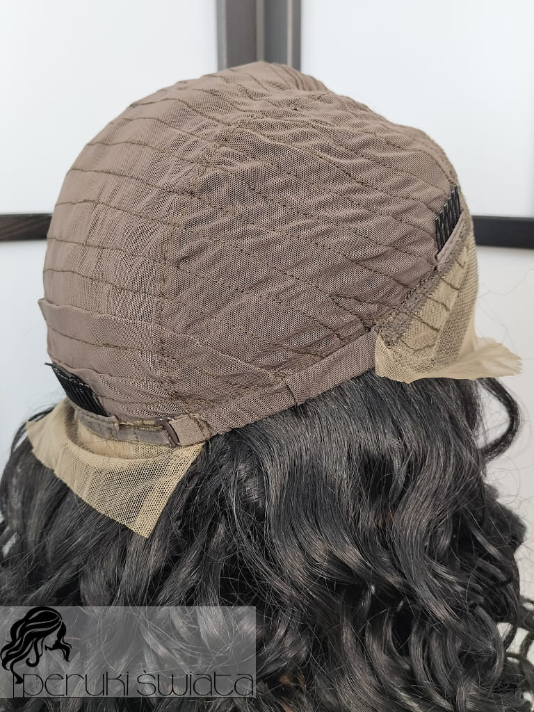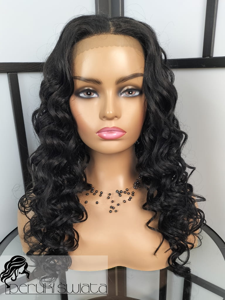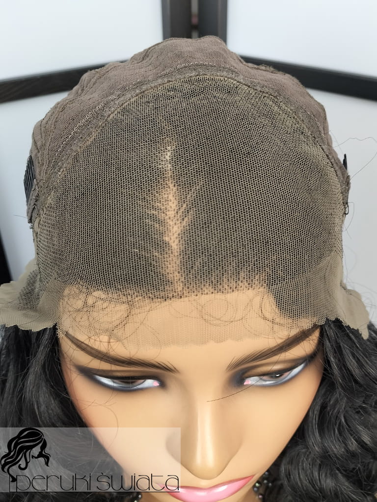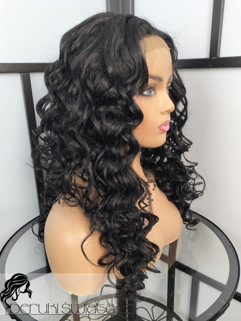 Peruka syntetyczna Capri, peruka z kanekalonu, afroloki, czepek typu full lace, kolor: czerń naturalna