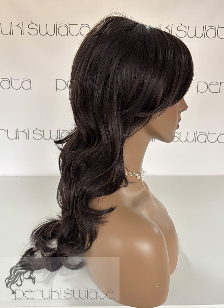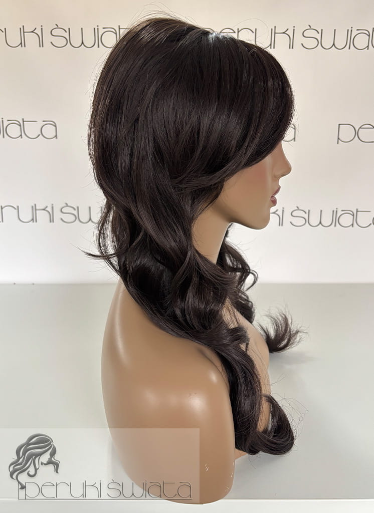Peruka syntetyczna Cataleya, kanekalon typu "true hair", long bob z grzywką, kolor: ciemny brąz