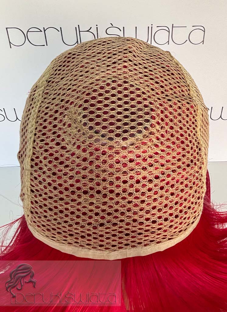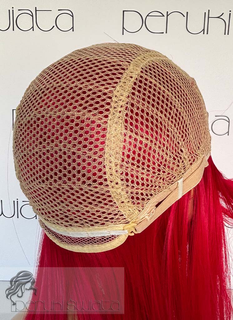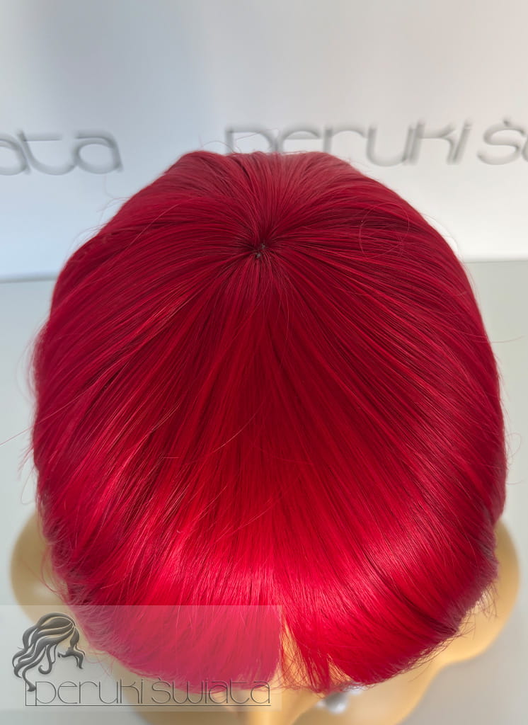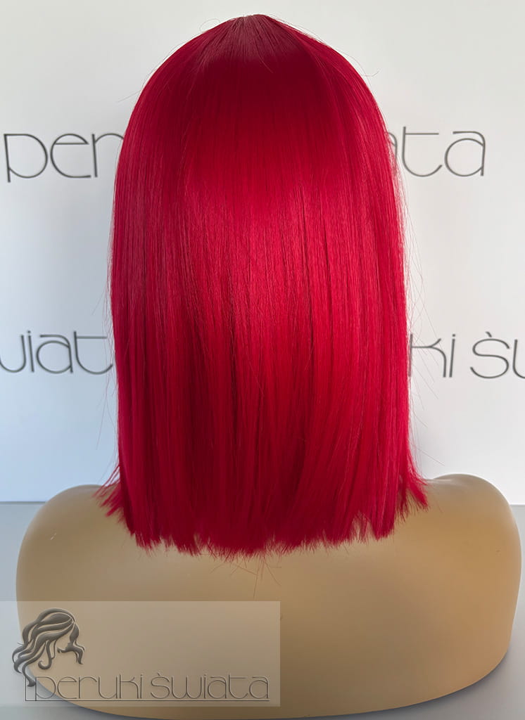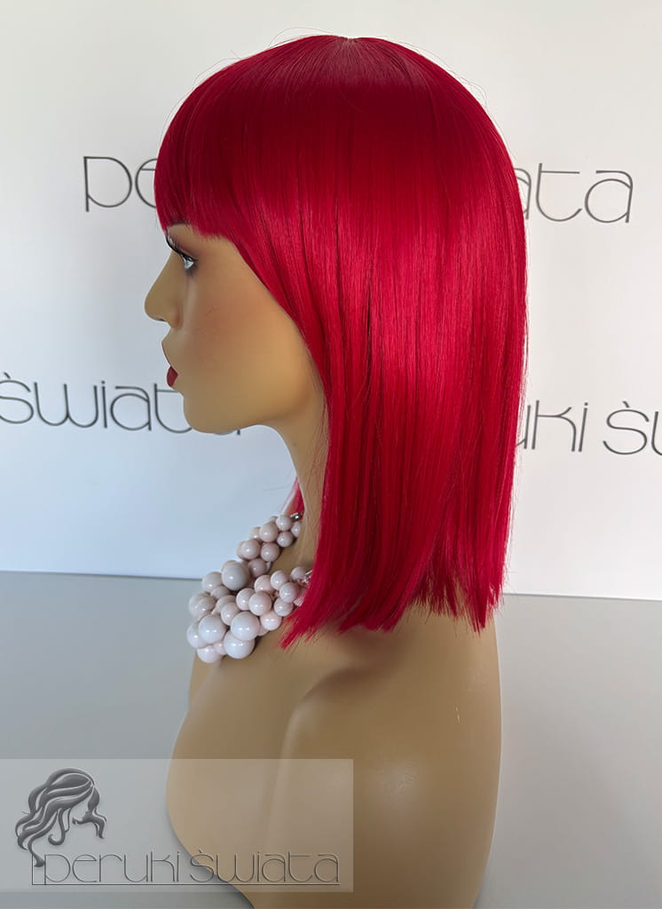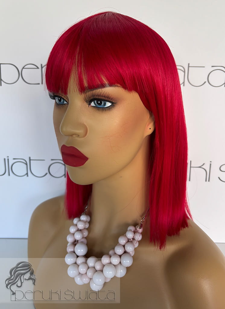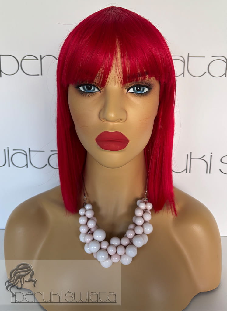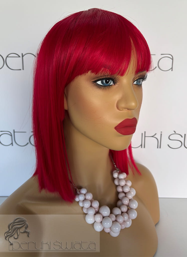 Peruka syntetyczna Clarissa, bob z grzywką, kolor: intensywna czerwień, włosy miękkie jak atłas