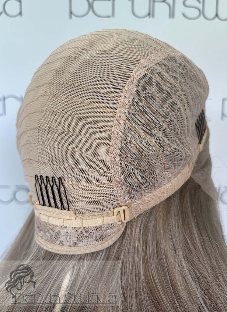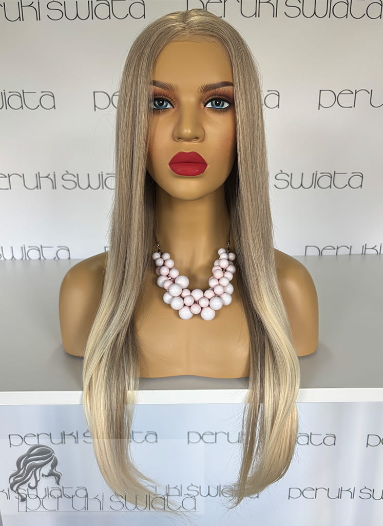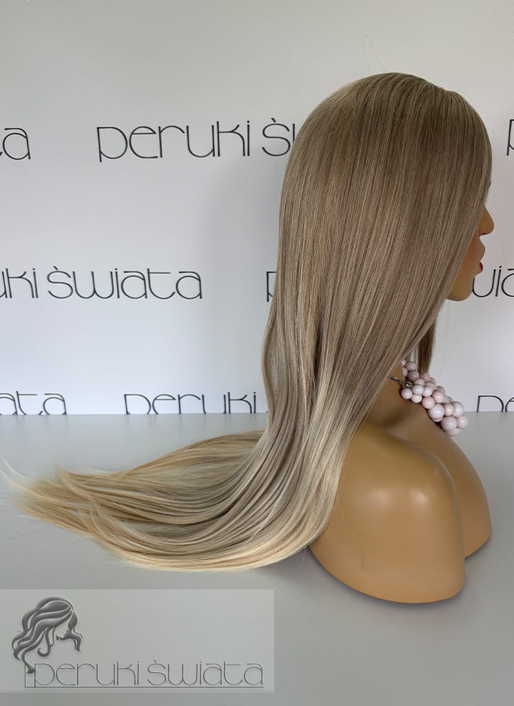 Model Sonia, peruka syntetyczna z kanekalonu, słowiański blond z odrostem, czepek full lace front