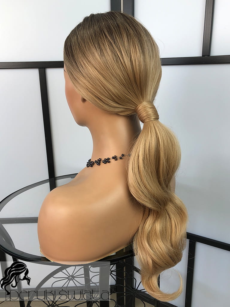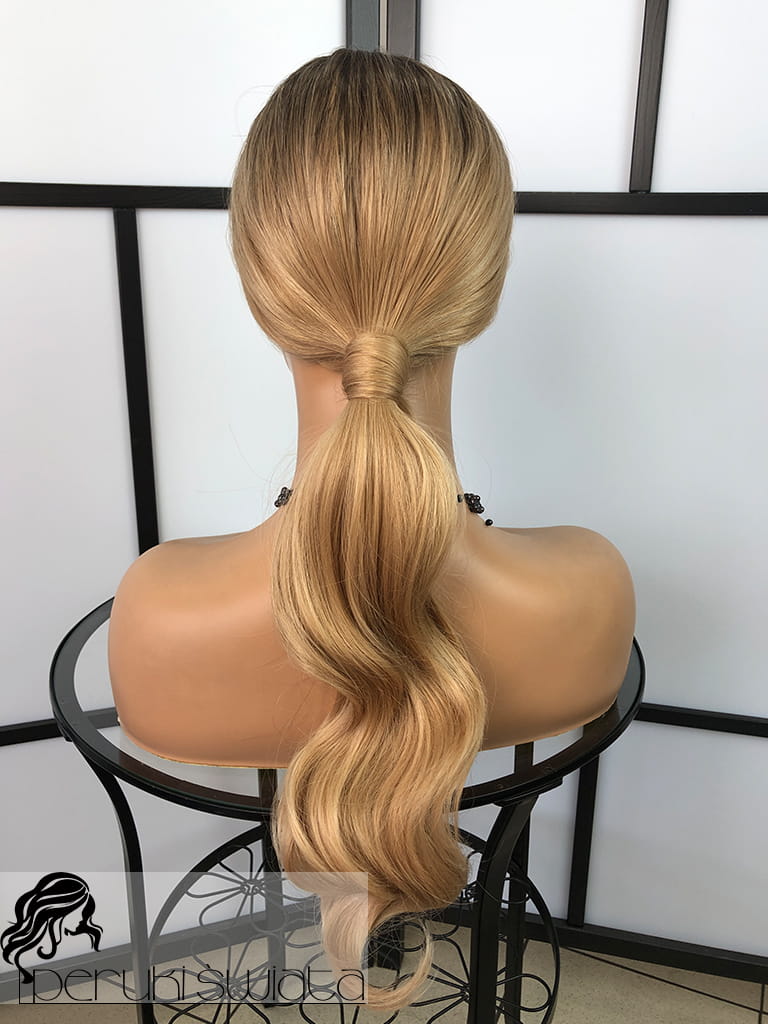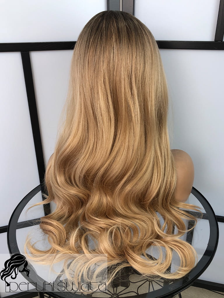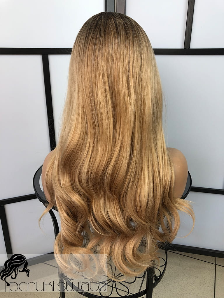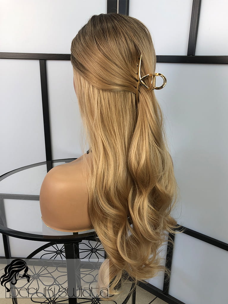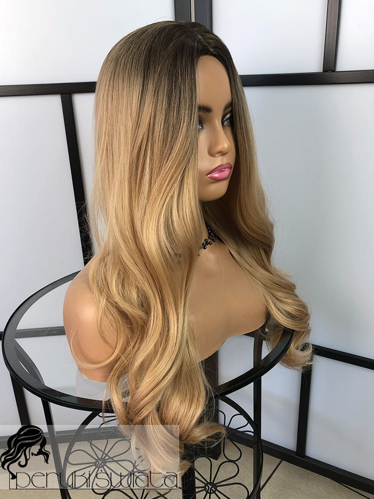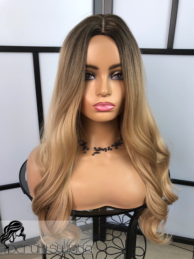 Peruka syntetyczna Daisy, fale, long bob, kolor: sombre: bursztynowy blond