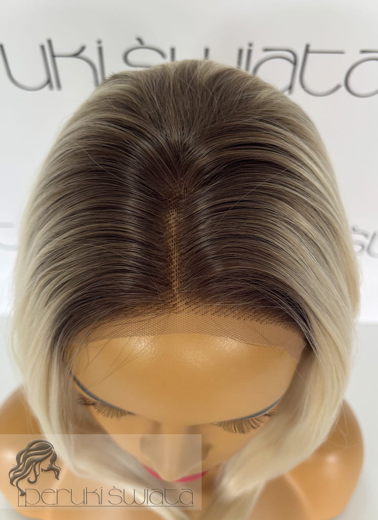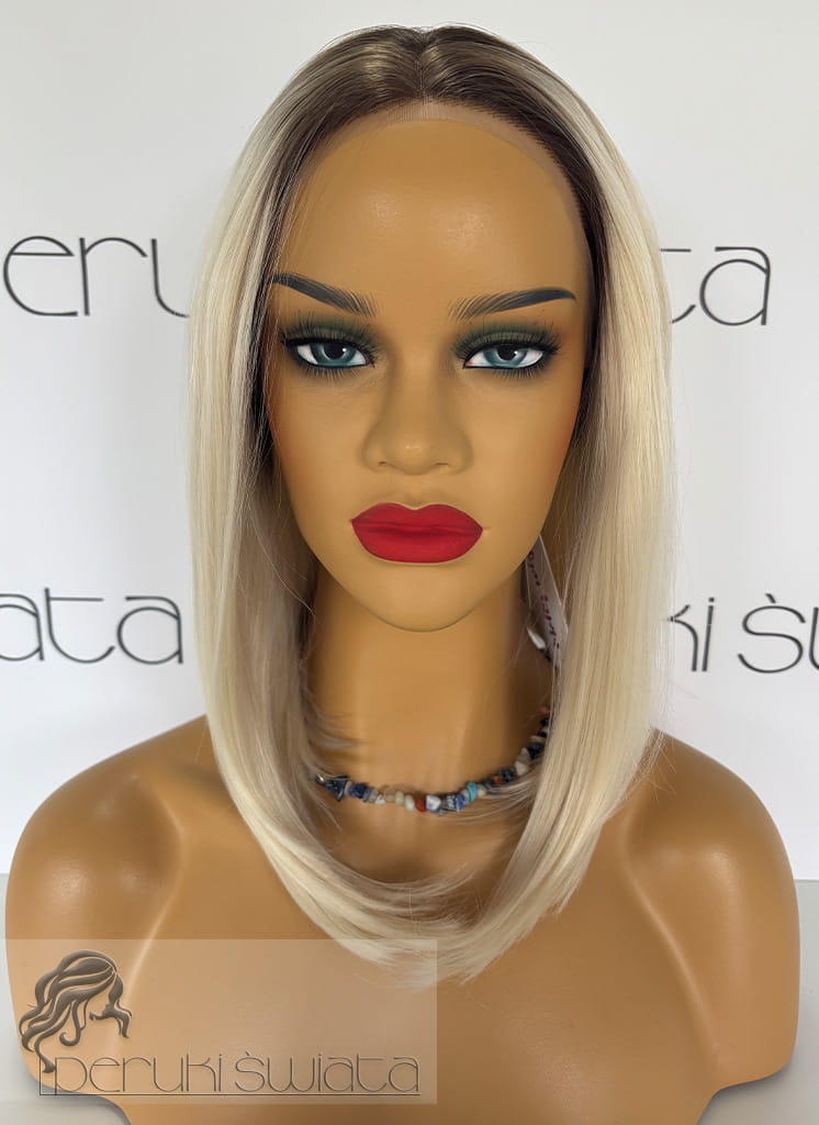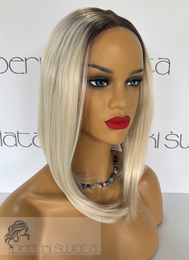 Peruka syntetyczna Danielle, czepek typu: full lace, kanekalon japoński, long bob, platynowy blond na odroście