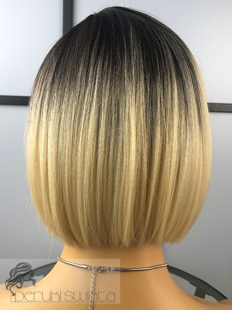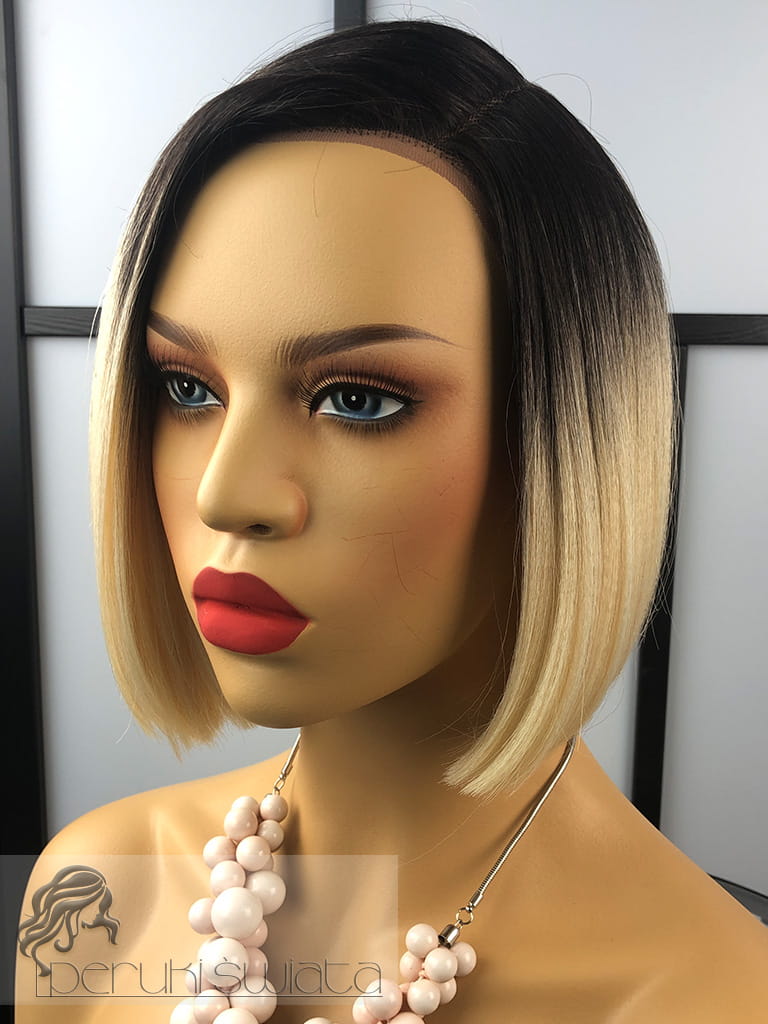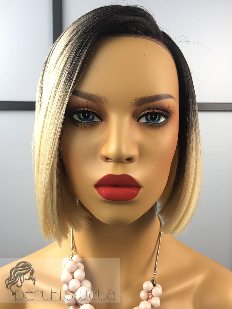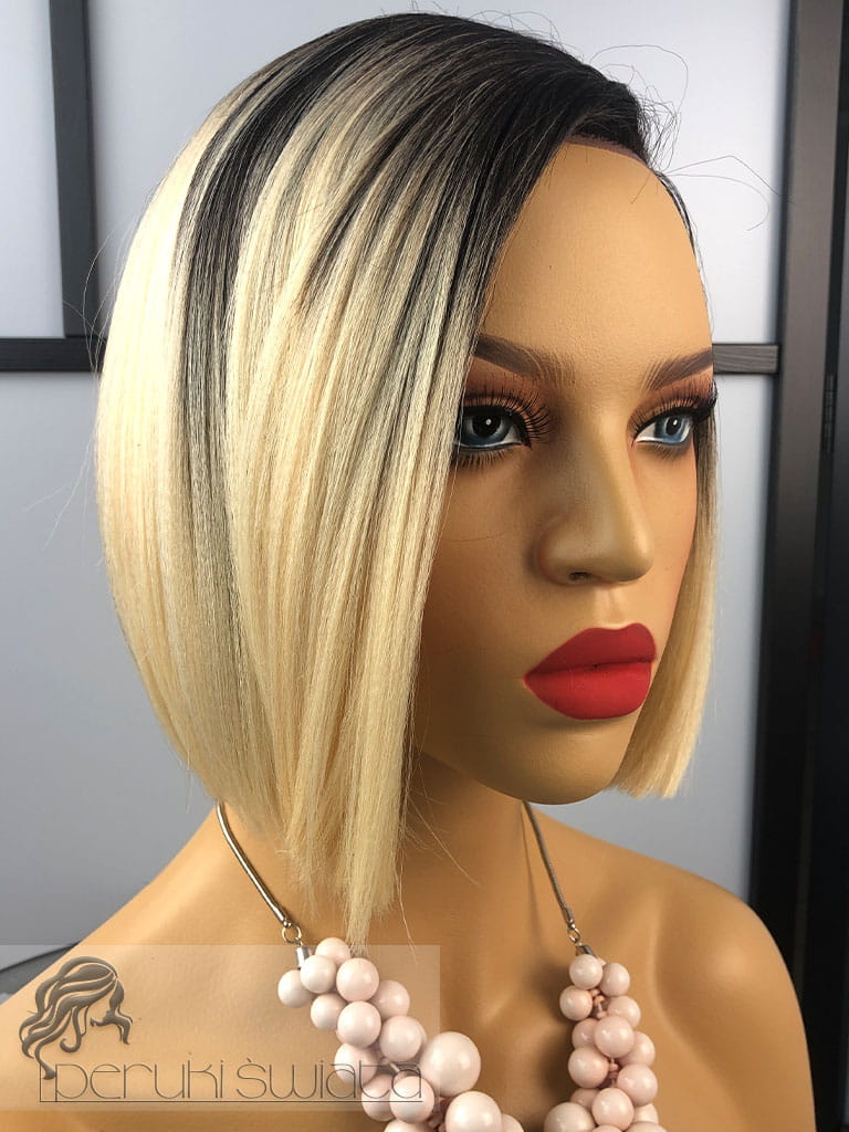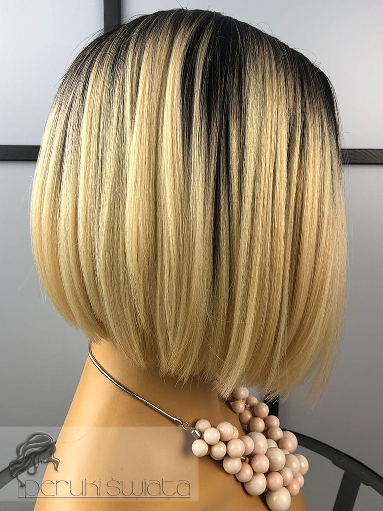 Peruka syntetyczna Dayana, kanekalon termoplastyczny, bob, jasny, ciepły blond na ciemnym odroście