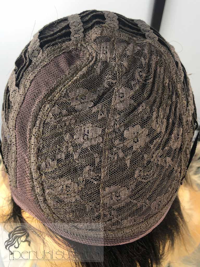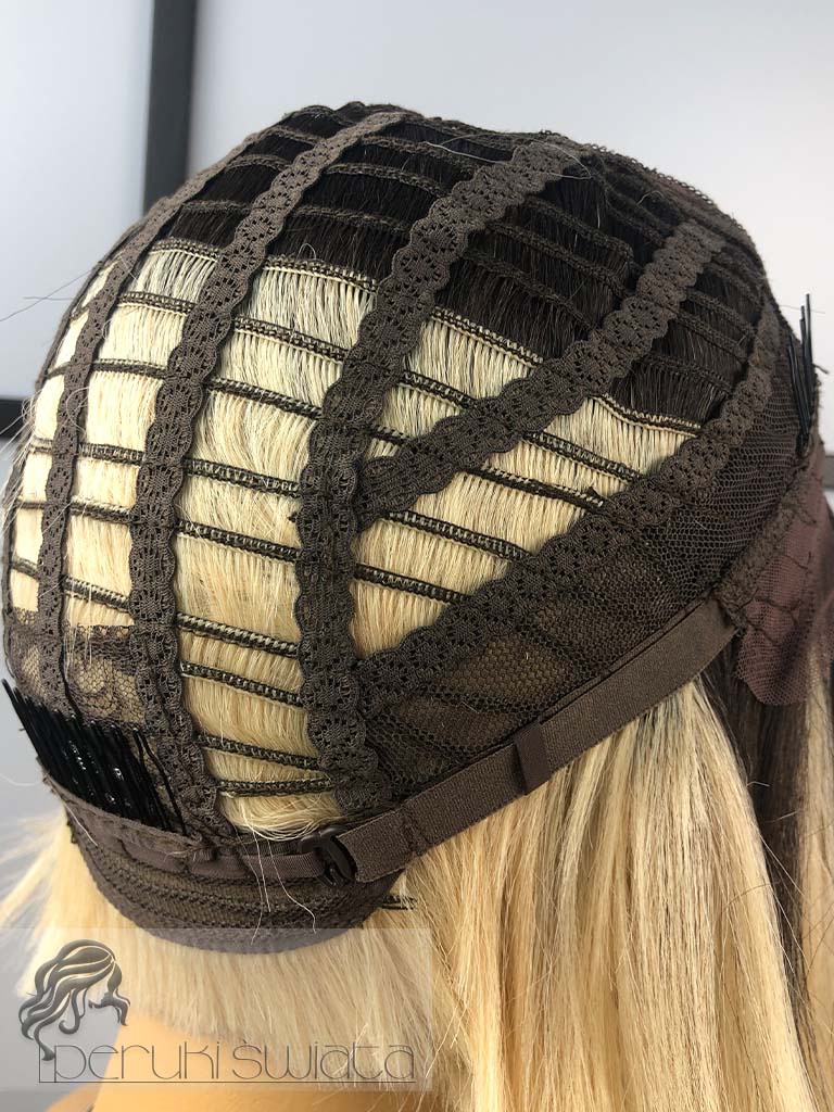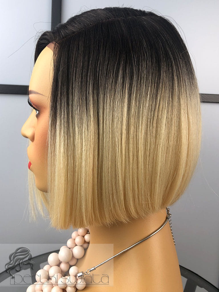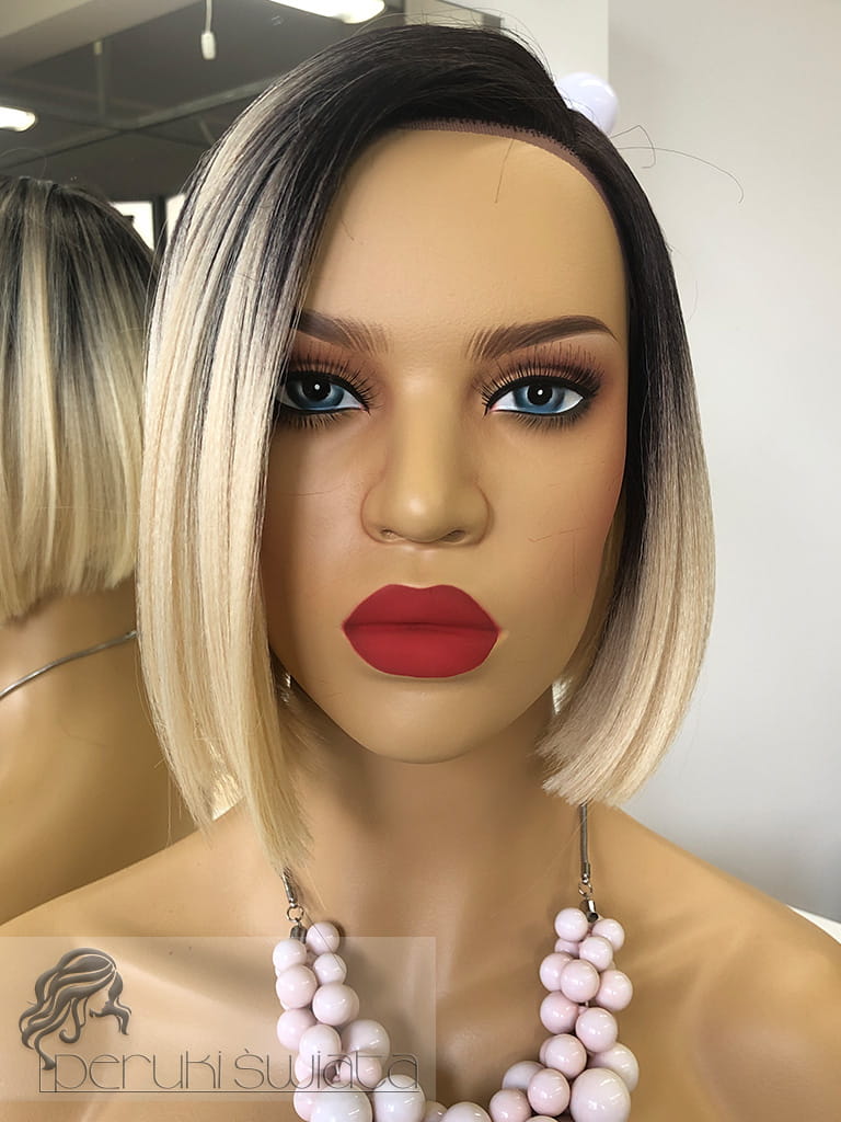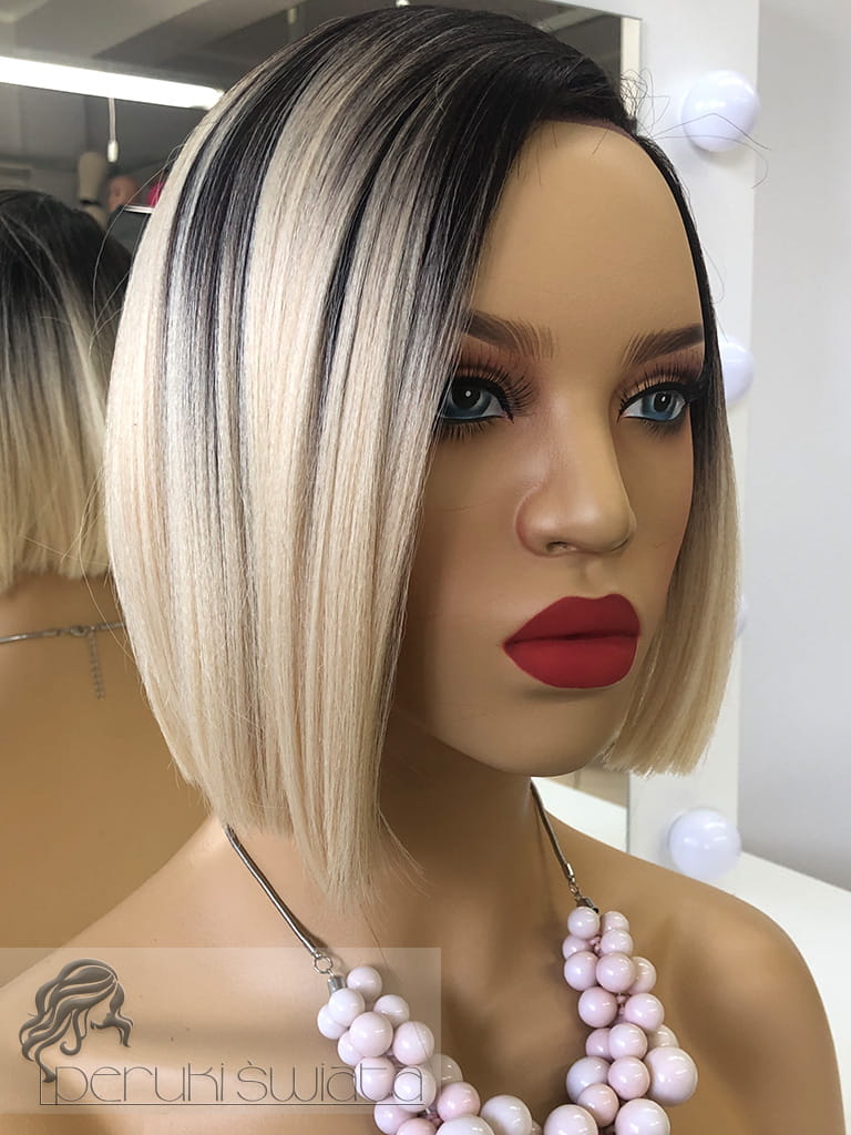 Peruka syntetyczna Dayana, kanekalon termoplastyczny, bob, jasny, ciepły blond na ciemnym odroście