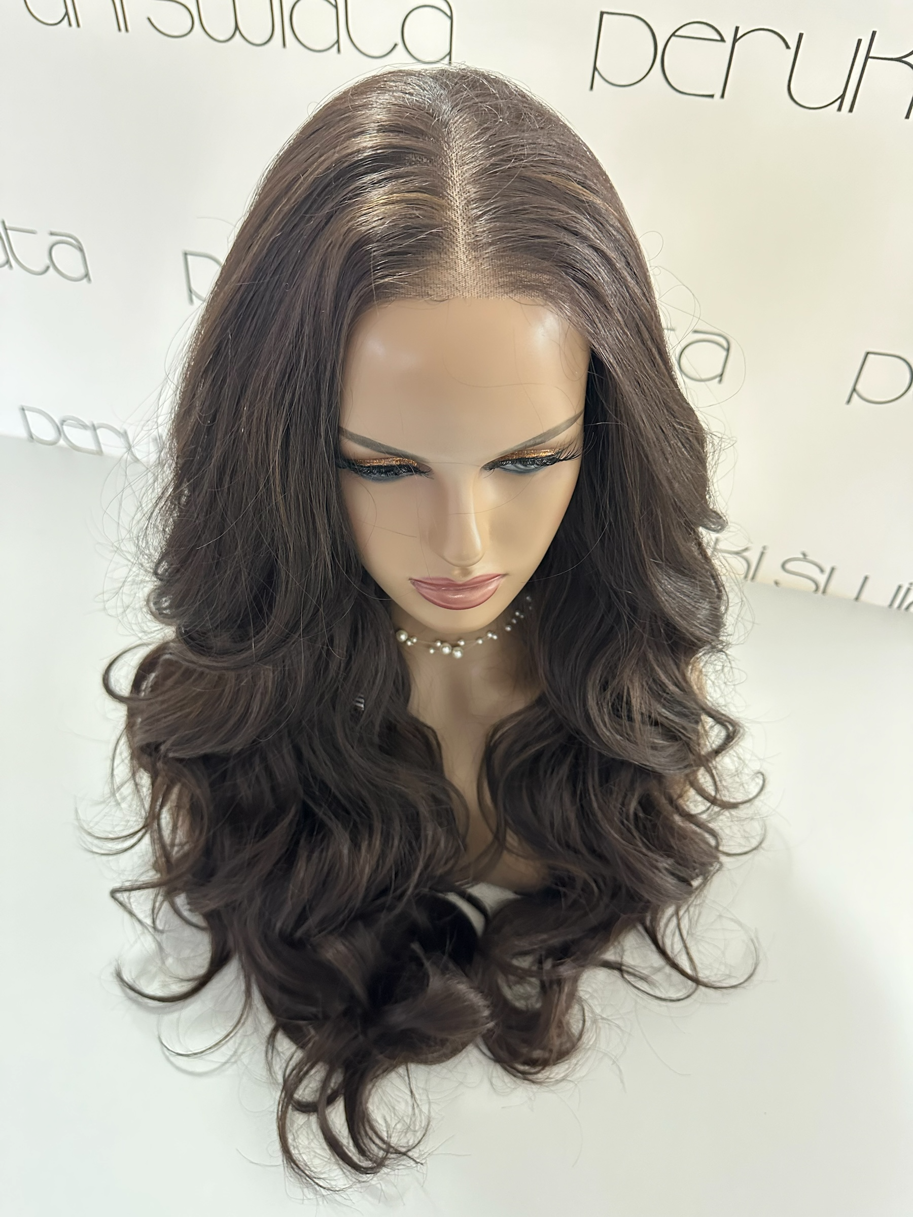 Peruka syntetyczna Denver, czepek typu: full lace, kanekalon termoplastyczny, mix brązów 5/6