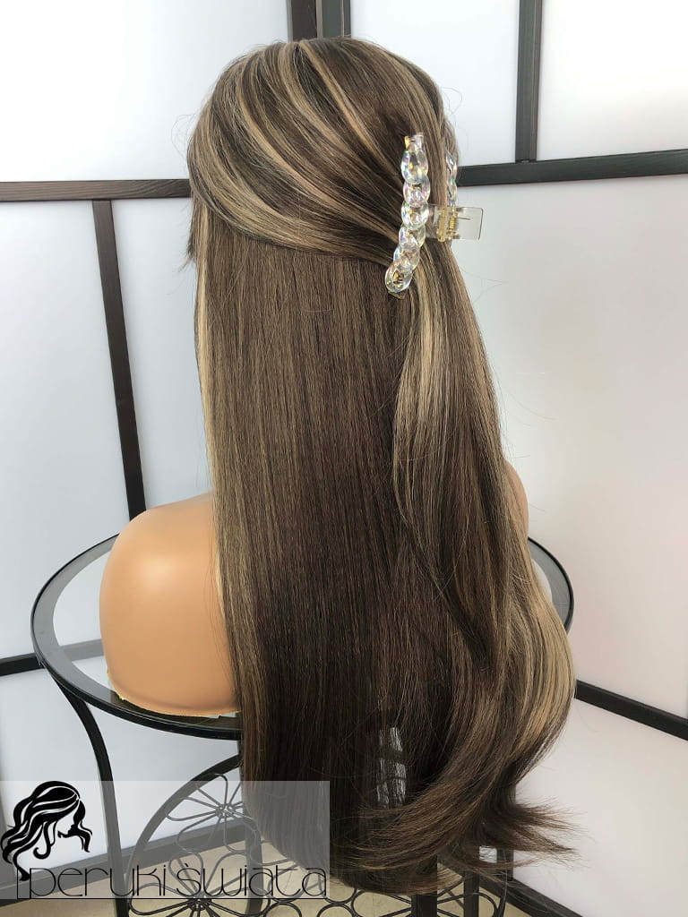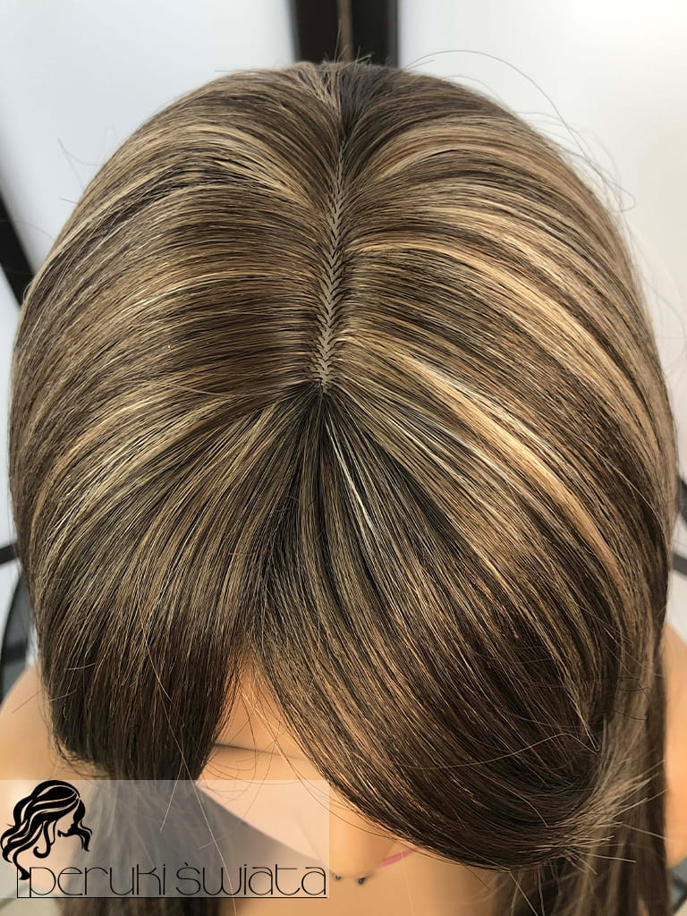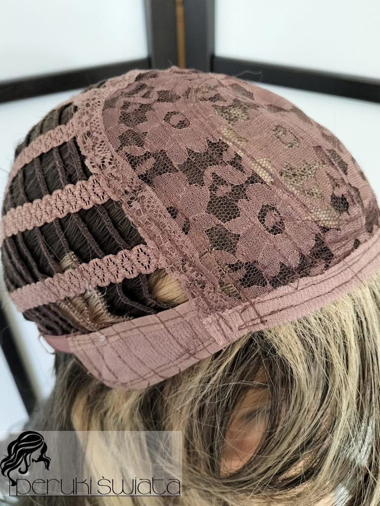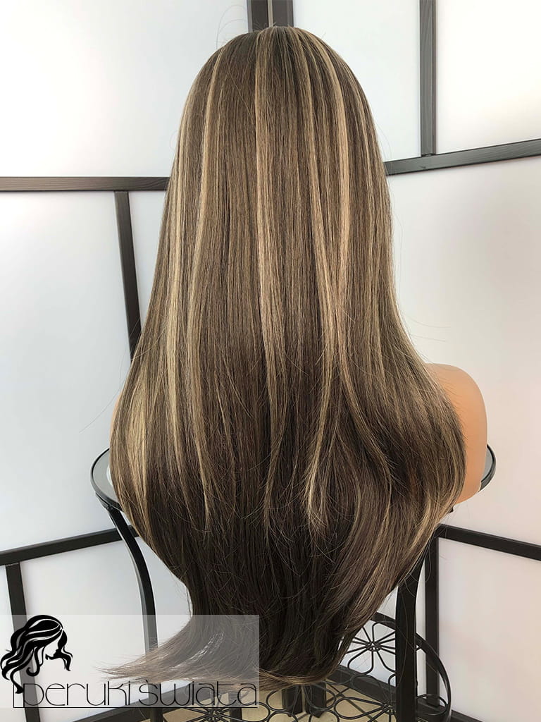 Peruka syntetyczna Dominika, kanekalon typu "true hair", kolor: brąz z refleksami blondu