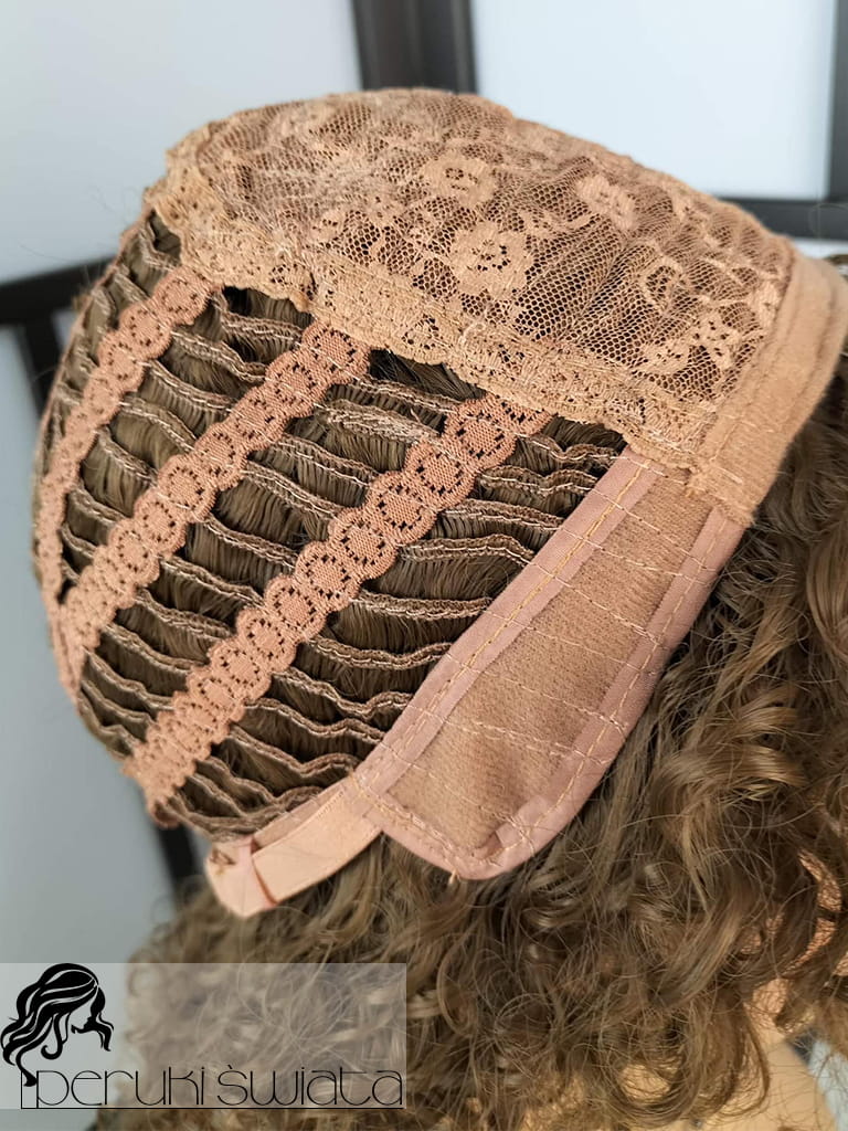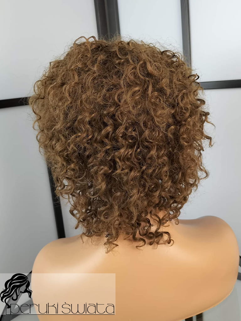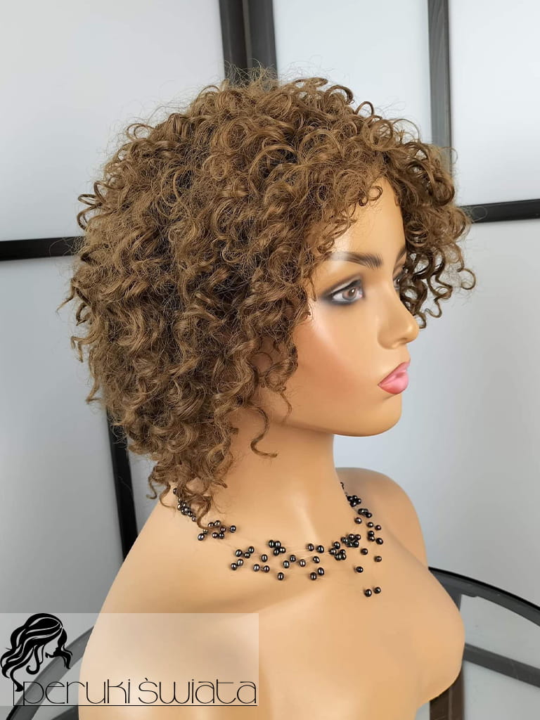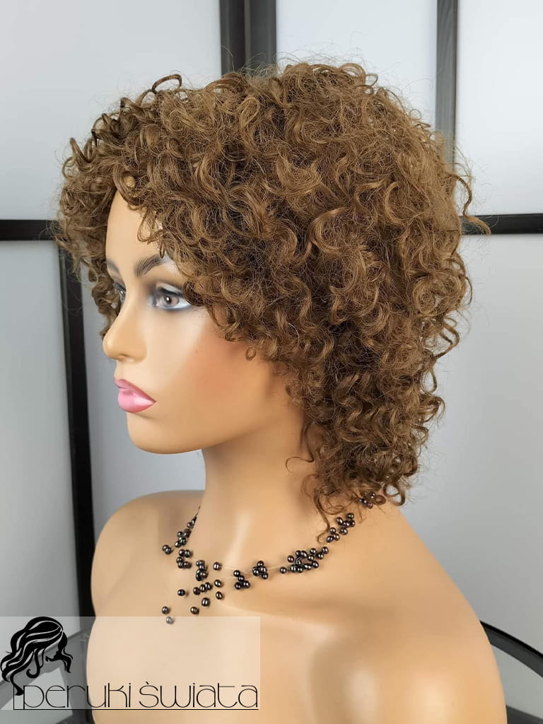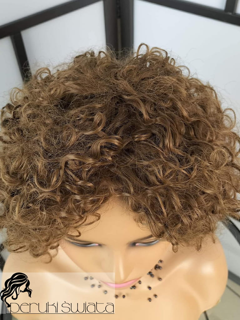 Peruka syntetyczna Eliza, kanekalon, cieniowany bob z grzywką, loki, drobny skręt, kolor: ciemny blond
