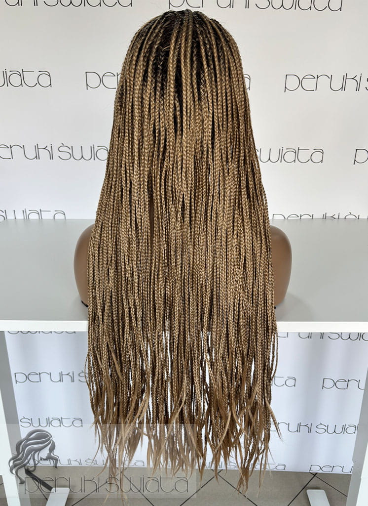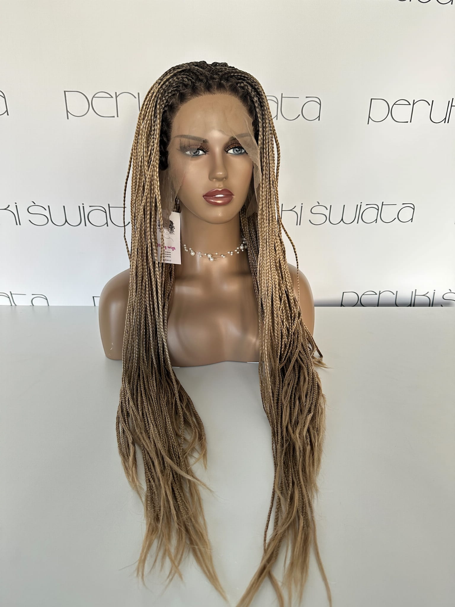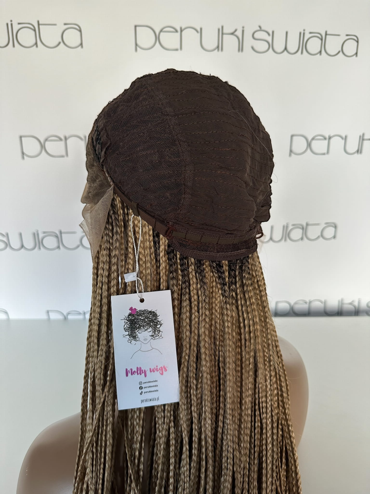 Peruka syntetyczna Elliott, warkoczyki, kolor: ombre, mix blondów z brązem